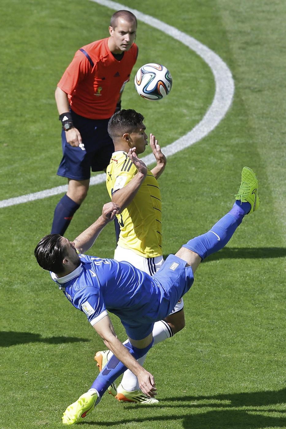 Al 5′ Parte Cuadrado in una sua scorribanda sulla sinistra, crossa rasoterra per Rodriguez che finta scompaginando la difesa, arriva l’ex napoletano Arnero che tira sulla sinistra, c’e’ una leggera deviazione di Manolas e il pallone si insacca per la gioia esplosiva dei tifosi in tribuna. I giocatori in campo festeggiano con una danza tribale e sembra tutto facile per la favorita Colombia, che pero’ si ritira in buon ordine nei suoi territori. Ma e’ la Grecia che si scuote e cerca di recuperare.