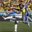Falcao sorride in tribuna a Belo Horizonte. La Colombia va avanti al galoppo anche senza di lui e comincia con autorita’ il mondiale battendo la Grecia 3-0 e fa capire di poter arrivare almeno ai quarti: massimo risultato col minimo sforzo. subito in vantaggio con l’ex napoletano Armero, lascia sfogare le velleita’ di una formazione ellenica muscolare, testarda ma con poco talento.