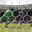 Invece che al consueto 4-3-3, sceglie la strada del 4-4-2. Già al 15′ l’Uruguay trova un gol, su deviazione di Cavani per Godin, che insacca da pochi passi: il difensore dell’Atletico Madrid, però, è in fuorigioco. Al 22′ l’episodio che caratterizza il primo tempo: Forlan batte una punizione, in posizione leggermente defilata, e fa assumere al pallone una traiettoria molto tesa, nella speranza di trovare una deviazione vincente.