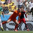 Huntelaar non si fa irretire da Ochoa: rincorsa, gran botta che spiazza il portiere, beffa i messicani e regala all’Olanda un quarto di finale che sembrava ormai sfumato.