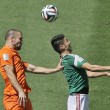 E all’inizio della ripresa capitola per una prodezza di Giovani Dos Santos: al 3′ palla in mezzo a sei avversari, controllo e sul secondo rimbalzo incrocia sul palo piu’ lontano con una conclusione straordinaria. Van Gaal corre ai ripari inserendo il gioiello Depay. All’11’ miracolo di Ochoa su angolo e conclusione a botta sicura di Ve Vrij. Il portiere respinge con le mani, il pallone colpisce il palo e l’occasione sfuma. Olandesi sfortunati anche al 15′: