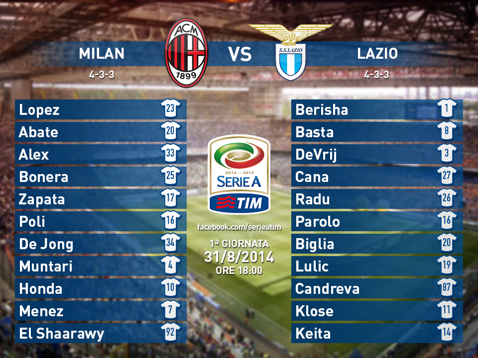 E’ andata oltre ogni previsione. I rossoneri – alla prima di campionato – segnano tre gol (Honda, Muntari e Menez su rigore) a una Lazio che gioca bene, a viso aperto, senza paura. La sfida di Milano finisce 3-1 per una sfortunata autorete di Alex, con la Lazio che fallisce il rigore del 3-2 grazie a Diego Lopez che para il debole tiro di Candreva.