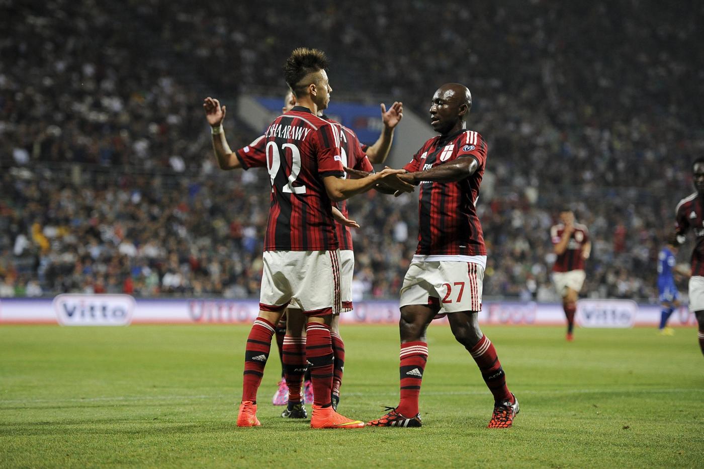 Nel secondo tempo la Lazio si getta all’arrembaggio, attacca a testa bassa: in apertura bella giocata di Keita non colta da Parolo. Risponde Poli di destro. Al 7′ e’ il Milan ad andare vicino al raddoppio con Honda che prima se ne va ma poi sbaglia tutto. Ci prova De Vrji con un gran tiro ma all’11’ passa il Milan con un gol in spaccata di Muntari. San Siro esplode, acclama Inzaghi che risponde con altrettanto calore.