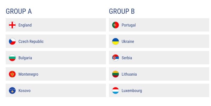 GIRONE A: Inghilterra, Repubblica Ceca, Bulgaria, Montenegro, Kosovo