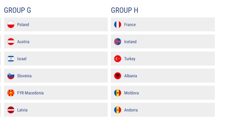 GIRONE H: Francia, Islanda, Turchia, Albania, Moldova, Andorra
