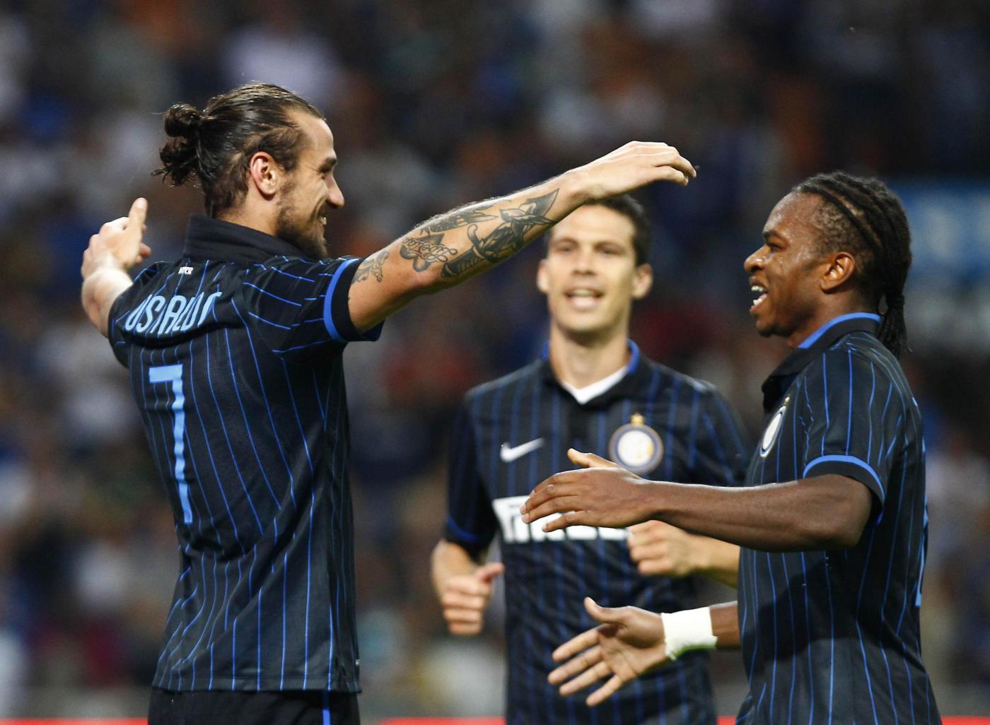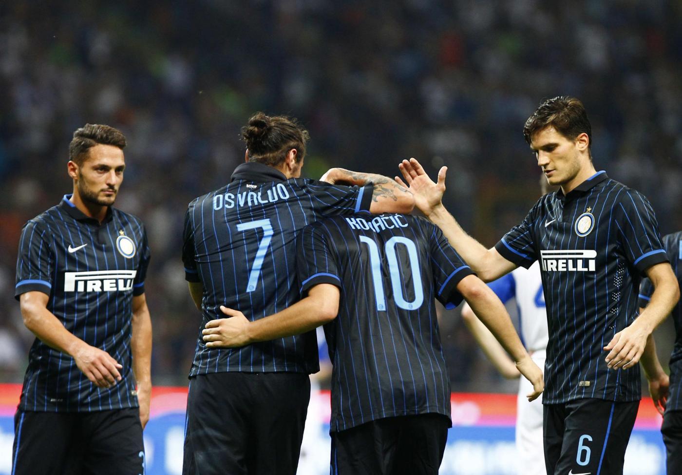 Inter (3-5-1-1): Carrizo 6; Andreolli 6, Ranocchia 6.5, Juan Jesus 6; D’Ambrosio 6, Hernanes 6.5 (21′ st Jonathan 6.5), M’Vila 6, Obi 6 (13′ st Kuzmanovic 6), Nagatomo 6.5; Kovacic 7.5 (8’st Icardi 7); Osvaldo 7. (1 Handanovic, 15 Vidic, 13 Guarin, 97 Bonazzoli). All: Mazzarri 7.
