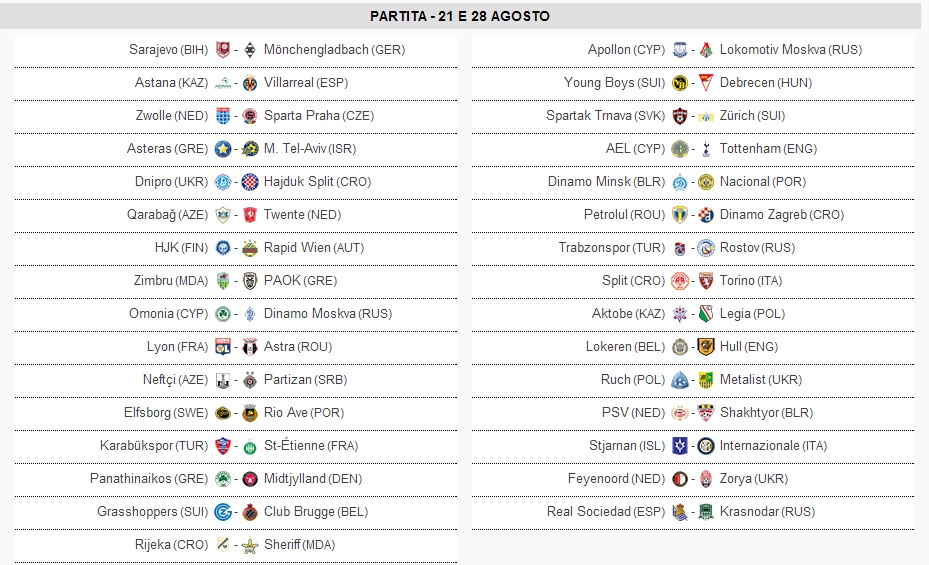Le gare di andata si giocheranno giovedì 21 agosto, il ritorno giovedì 28 agosto.