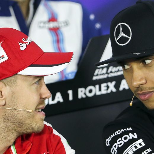 Vettel invece parla in italiano e festeggia il suo terzo posto all’esordio con la Ferrari: