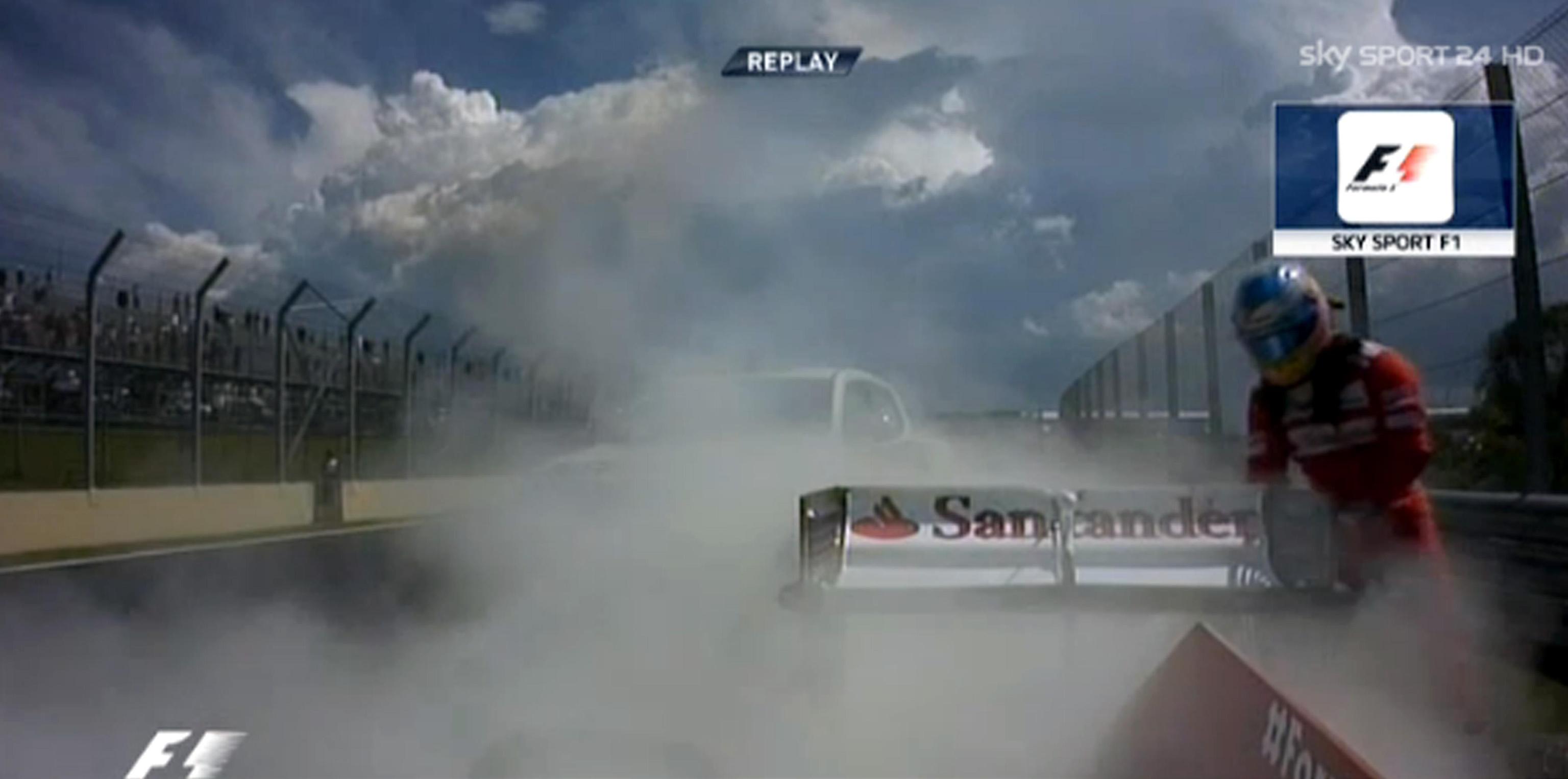 ROMA – Nico Rosberg davanti a Lewis Hamilton nelle prime prove libere per il Gp del Brasile. Ma la scena la ruba, suo malgrado, Fernando Alonso: la sua macchina finisce in fiamme e lui si deve improvvisare anche pompiere. Simbolo impietoso di una stagione da buttare.