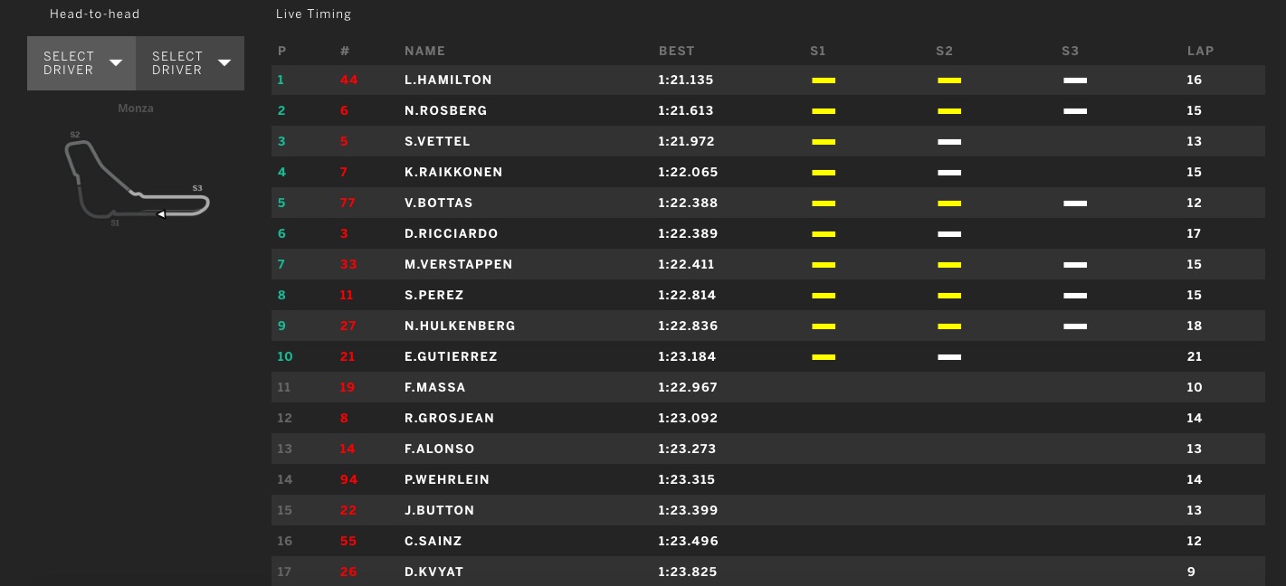 Questa la griglia di partenza del Gran Premio d’Italia, in programma a Monza.