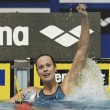 Federica Pellegrini non nasconde la gioia dopo aver centrato la quinta vittoria europea nei 200 stile.