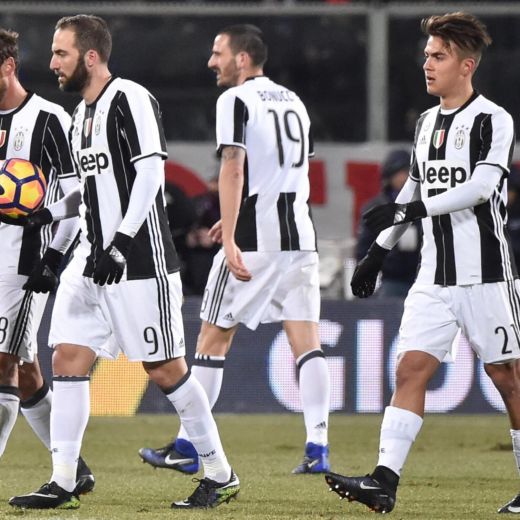 Juventus (3-5-2): Buffon 6, Barzagli 5.5 (35′ st Mandzukic sv), Bonucci 5.5, Chiellini 5, Cuadrado 5, Khedira 5.5, Marchisio 5 (32′ st Rincon sv), Sturaro 5 (16′ st Pjaca 5.5), Alex Sandro 5.5, Higuain 6.5, Dybala 5. (25 Neto, 32 Audero, 24 Rugani, 22 Asamoah, 11 Hernanes, 5 Pjianic). All. Allegri 5