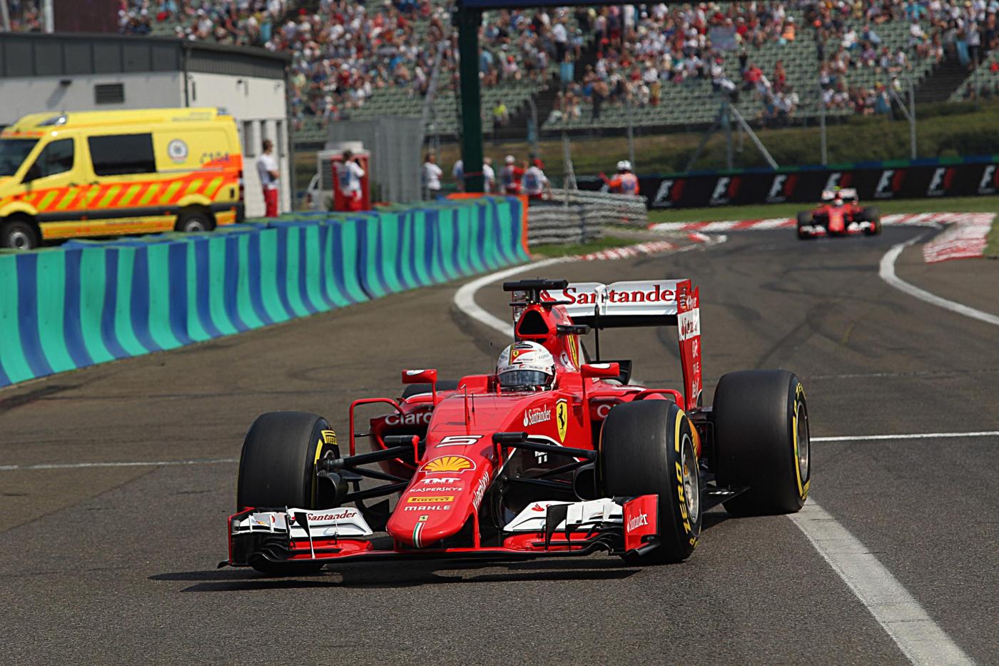 BUDAPEST (UNGHERIA) – Sebastian Vettel su Ferrari ha vinto il Gp di Ungheria, decima prova del mondiale 2015 di Formula 1. Vettel, dopo una grandissima partenza (QUI IL VIDEO), ha sempre tenuto il comando del Gp. Dietro il tedesco della Ferrari, Daniil Kvyat e Daniel Ricciardo su Red Bull.