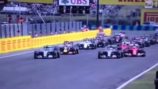“Grazie ragazzi, Forza Ferrari”, ha urlato al team Vettel appena tagliato il traguardo e ha poi detto in francese: “Grazie Jules, questa vittoria è per te!”, dedicando la vittoria al suo amico Bianchi, morto il 17 luglio in seguito a un incidente avvenuto durante il GP del Giappone del 5 ottobre 2014.