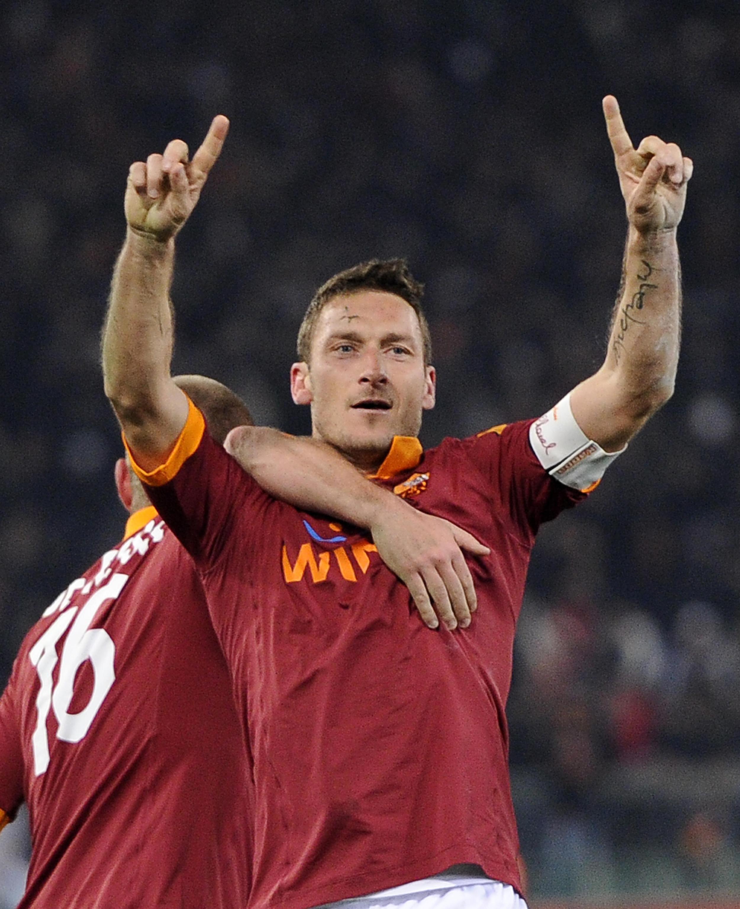 Totti segna l’1-0 decisivo contro la Juventus, 16 febbraio 2013.
