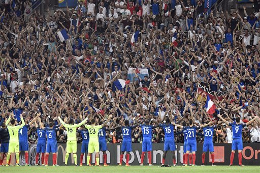 Francia: (4-2-3-1): 1 Lloris, 19 Sagna, 21 Koscielny, 22 Umtiti, 3 Evra, 15 Pogba, 14 Matuidi, 18 Sissoko, 7 Griezmann, 8 Payet, 9 Giroud. (16 Mandanda, 23 Costil, 2 Jallet, 17 Digne, 4 Rami, 13 Mangala, 5 Kanté, 6 Cabaye, 12 Schneiderlin, 20 Coman, 10 Gignac, 11 Martial). All.: Deschamps.