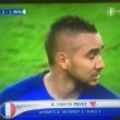 Dopo un minuto, sempre Payet crossa dalla destra per la testa di Giroud, che salta forse più alto del portiere della Fiorentina ma lo sposta con il braccio.