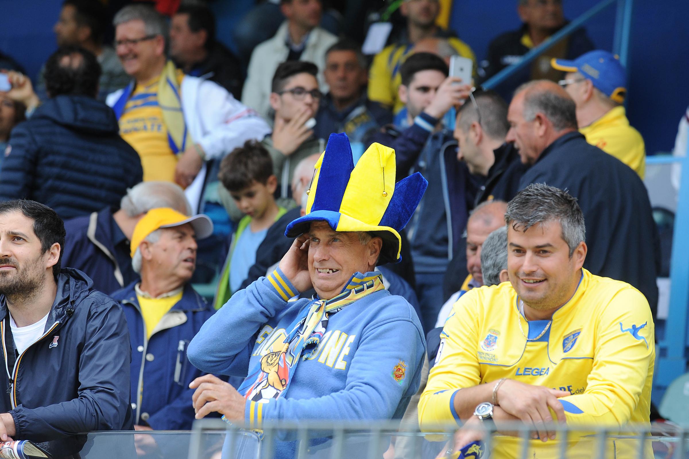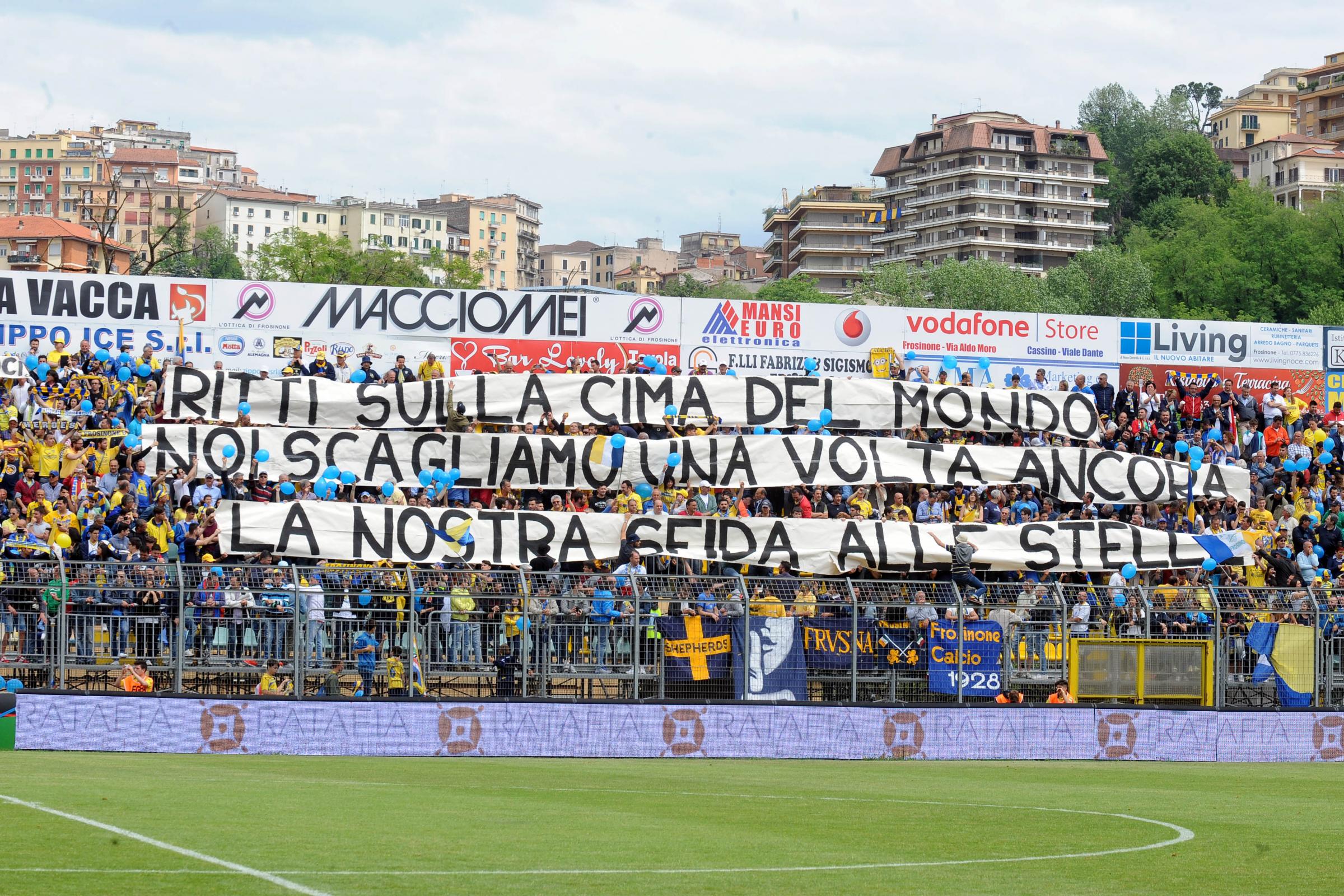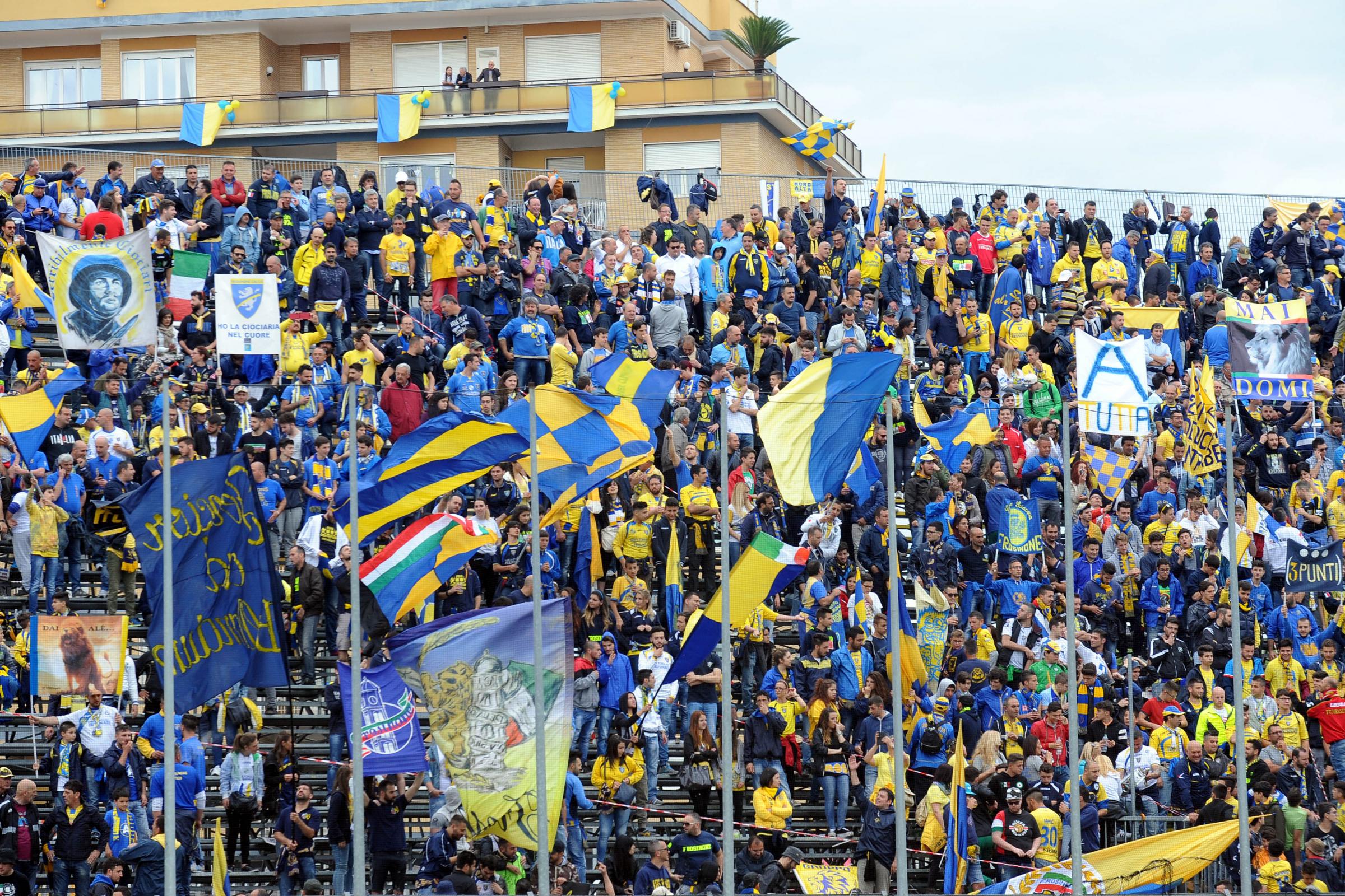 Prima della partita non era stata programmata nessunaย festa promozione, visto che un minimo di scaramanzia eraย d’obbligo: la cittร ha cominciato a colorarsi di giallo e azzurro ma in maniera soft, meglio non sfidare la sorte. Il Frosinone era tornato in Serie ย B dopo tre stagioni di Lega Pro e alle timide aspettative d’autunno, quando si sperava in una salvezza tranquilla e di vincere i due derby con il Latina. Invece le cose sono andate diversamente. Di salvezza non si รจ quasi mai parlato visto che la squadra allenata Roberto Stellone ha quasi sempre occupato i primi tre posti della classifica e contro i pontini, poi, sono arrivati i sei punti che hanno arricchito di un altro primato la stagione piรน esaltante degli 87 anni del club ciociaro.