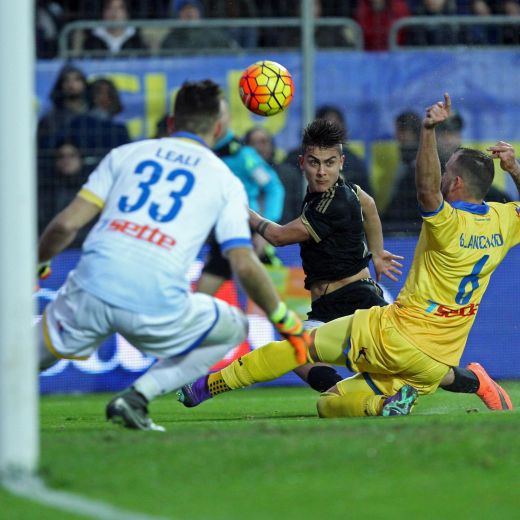 Juventus (3-5-2): Buffon 6, Barzagli 6, Bonucci 6, Chiellini 6 (32′ Rugani sv), Cuadrado 7, Marchisio 6.5, Pogba 6.5, Sturaro 6 (21′ st Pereyra 6), Alex Sandro 7, Dybala 7.5, Morata 6.5 (48′ st Favilli sv) (25 Neto, 34 Rubinho, 11 Hernanes, 18 Lemina, 20 Padoin, 26 Lichtsteiner). All.: Allegri 6. Arbitro: Massa di Imperia 6. Reti: nel st 28′ Cuadrado, 46′ Dybala. Angoli: 6 a 2 per la Juventus. Recupero: 0′ e 4′. Ammoniti: Crivello, Sammarco e Soddimo per gioco scorretto, Morata per comportamento antiregolamentare. Spettatori: 10.000.
