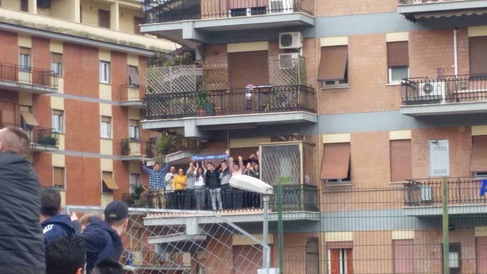 FROSINONE – In trasferta a Frosinone… per vedersi la partita del Napoli dal balcone. Domenica 10 gennaio a fare il tifo per il Napoli non c’erano solo i 3.000Â tifosi che hanno riempito tutti i posti della curva Sud, settore riservato agli ospiti dello stadio “Matusa” di Frosinone.