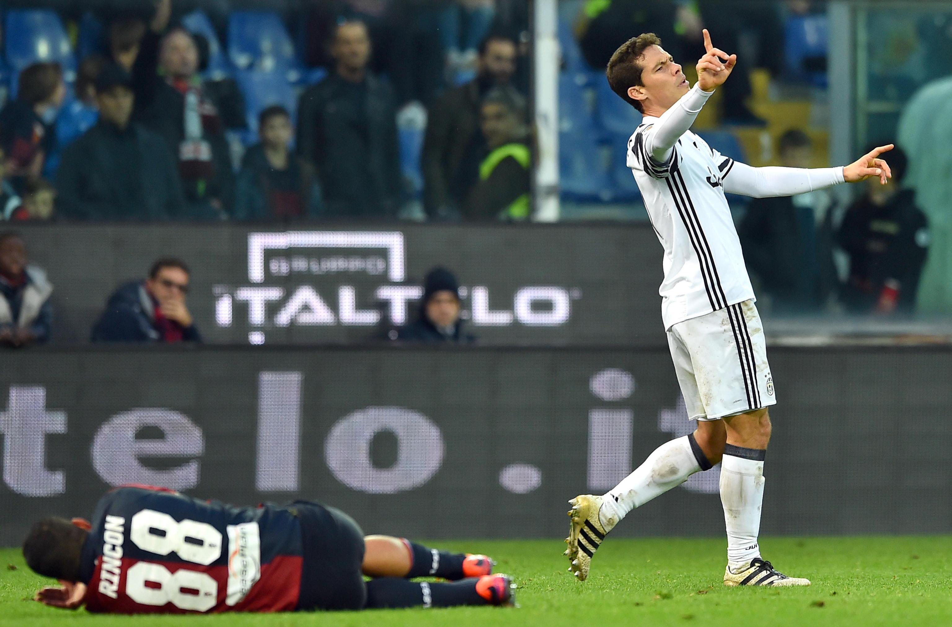 Allegri perde poi per infortunio Bonucci e si vede anche negare un rigore per un intervento di Ocampos su Mandzukic. Juve piu’ aggressiva in avvio di ripresa ma ne’ Pjanic da fuori, ne’ Khedira sugli sviluppi di un calcio d’angolo inquadrano la porta. Entra Higuain per Lichtsteiner, ma e’ ancora il Genoa pericoloso con Buffon che nega il 4-0 allo scatenato Simeone.