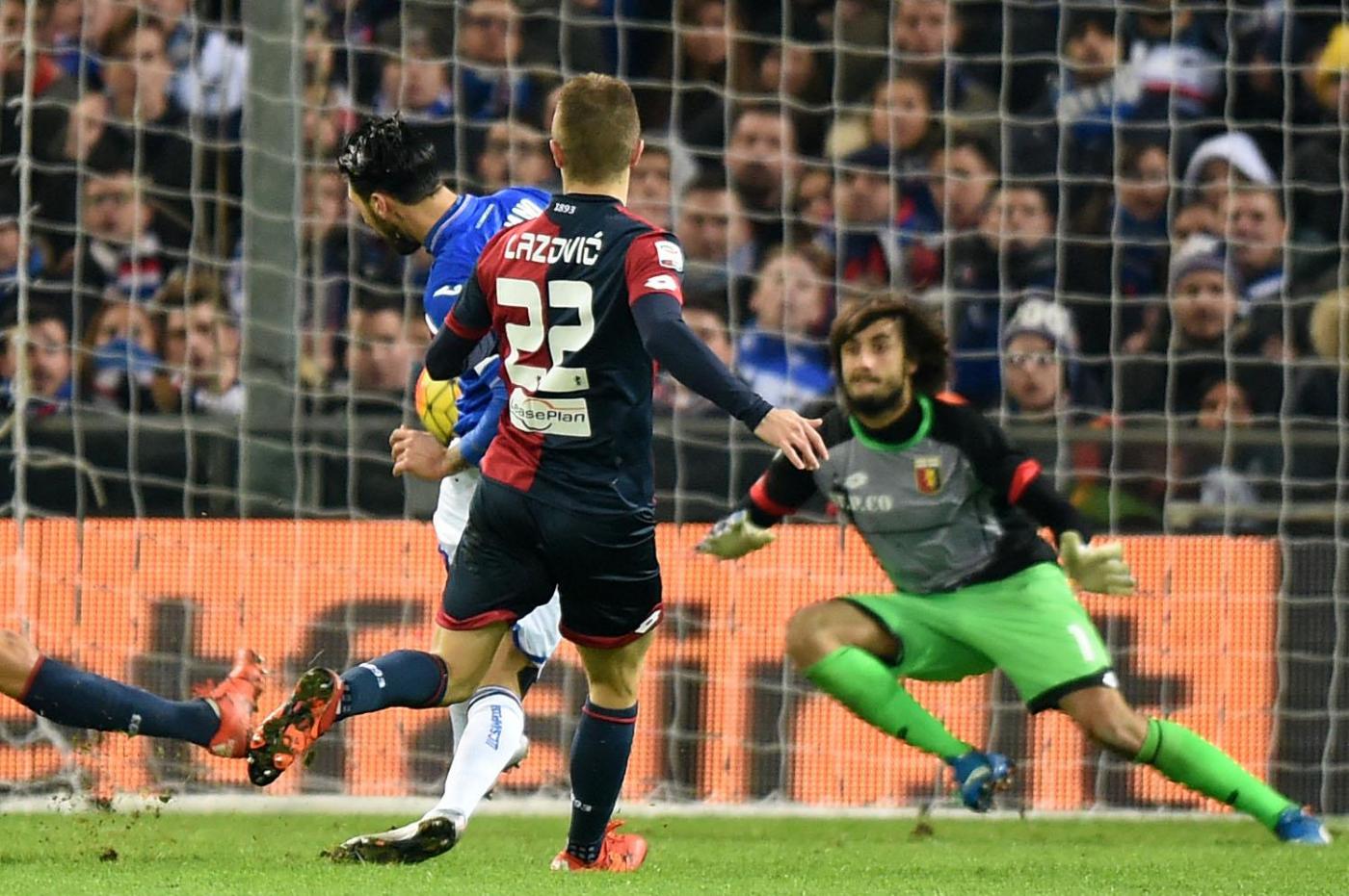 Sampdoria (4-3-3): Viviano 6.5, De Silvestri 6 (36′ pt Cassani 6), Zukanovic 6, Moisander 6, Regini 6.5, Barreto 6, Fernando 6.5, Soriano 7.5, Carbonero 6.5, Cassano 7.5 (30′ st Muriel sv), Eder 7 (13′ st Correa 5) (1 Puggioni, 26 Silvestre, 95 Ivan, 13 Pereira, 6 Coda, 17 Palombo, 18 Christodoulopoulos, 20 Krsticic, 9 Rodriguez). All.: Montella 7. Arbitro: Valeri di Roma 6.5. Reti: nel pt 18′ Soriano, 39′ Eder; nel set 4′ Soriano, 24′ e 35′ Pavoletti. Angoli: 12-5 per il Genoa. Recupero: 6′ e 4′ Ammoniti: Izzo, Burdisso, Rigoni e Rincon per gioco scorretto, Ansaldi, Pavoletti e Fernando per comportamento non regolamentare. Note: la partita è stata sospesa per 4′, dopo appena 50 secondi di gioco per lancio di fumogeni.