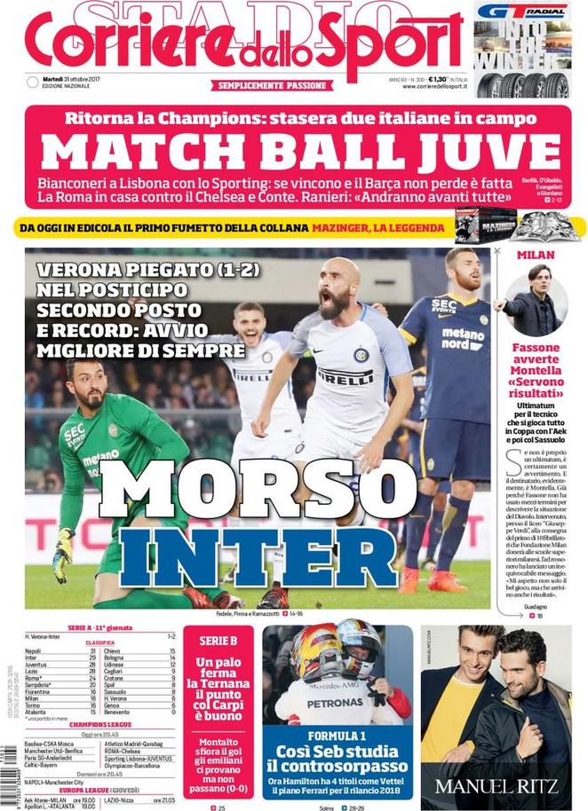 Tutte le principali news sullo sport, dai motori al basket, sui giornali italiani di oggi, martedì 31 ottobre.