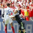 Galles in vantaggio allo scadere del primo tempo. Gareth Bale ha sorpreso Joe Hart. Il portiere dell’Inghilterra si è scusato con tifosi e compagni di squadra dopo questa papera.