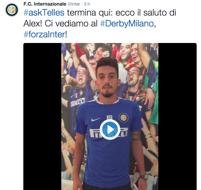 MILANO – Gli piacciono la pizza e la pasta, va allo stadio con il rosario, sogna di diventare il nuovo Roberto Carlos, vuole vincere il suo primo derby e già pensa allo scudetto: Alex Telles – via Twitter – si presenta ai tifosi nerazzurri ai quali racconta i propri gusti e confida le proprie aspirazioni.