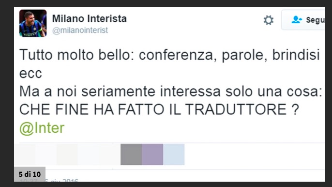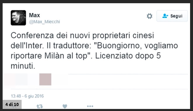 MILANO – Inter-Suning, che figuraccia. Il traduttore: «Porteremo il Milan al top». L’interprete e la scarsa dimestichezza con l’italiano, momenti di grande ilarità sui social network.