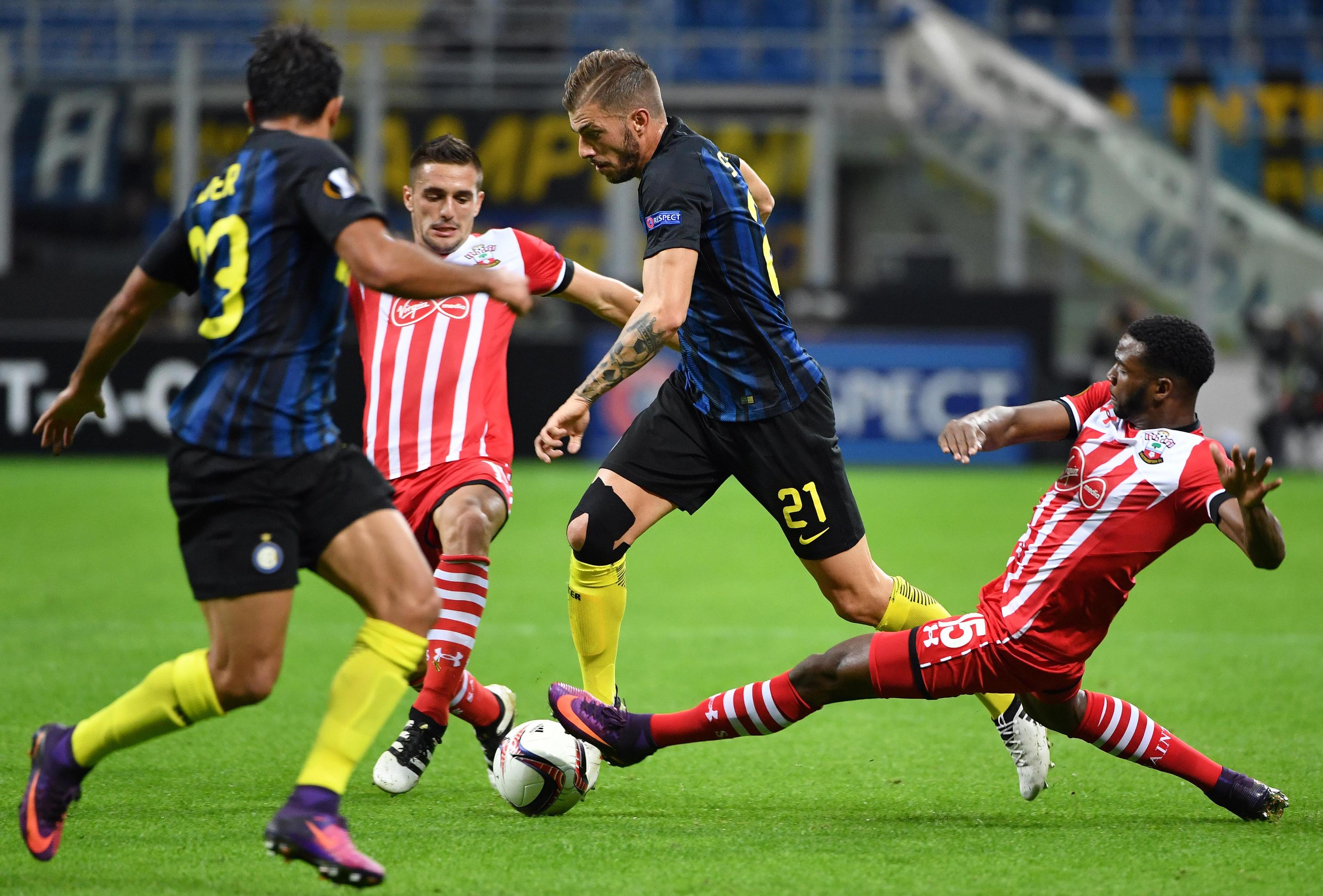 Inter (4-2-3-1): Handanovic; Ansaldi, Miranda, Murillo, Santon; Joao Mario, Kondogbia; Candreva, Banega, Perisic; Icardi. All.: De Boer.
