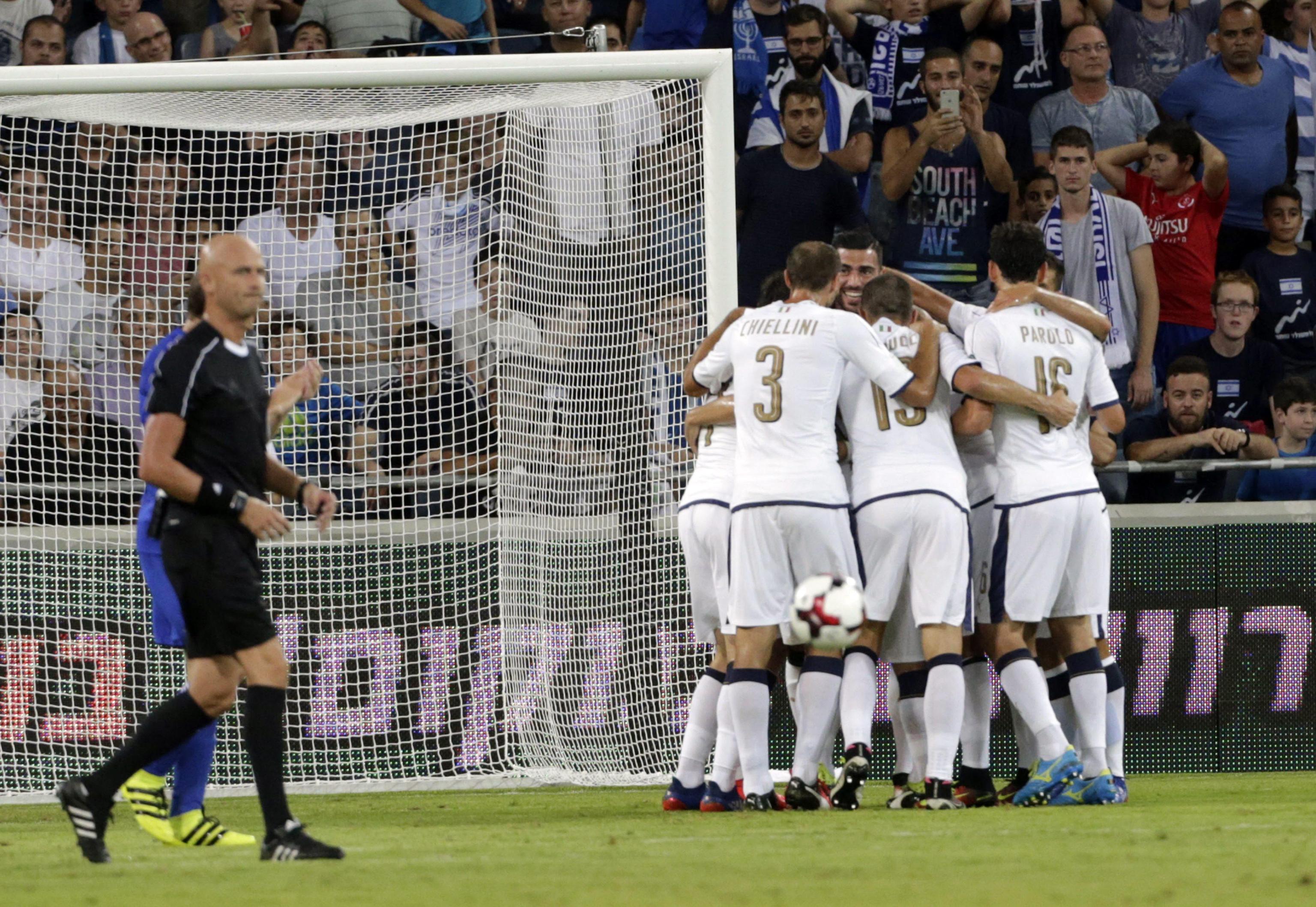 ** I GOL: – 14′ pt: palla di Verratti sulla sinistra per Antonelli che serve Pellè al centro dell’area. l’attaccante azzurro da due passi batte Goresh in uscita per il vantaggio azzurro. – 30′ pt: fallo di Ben Bitton su Bonaventura lanciato in area di rigore. L’arbitro Korasev non ha dubbi e assegna il calcio di rigore. Dagli 11 metri Candreva spiazza Goresh per il 2-0. – 35′ pt: Chiellini perde un pallone in posizione pericolosa, Hemed è lesto nell’innescare Ben Haim che con un pregevole pallonetto sul palo lontano batte Buffon e riapre il match. – 38′ st: Pellè prolunga per Immobile che entra in area lascia partire un diagonale di destro che batte Goresh.