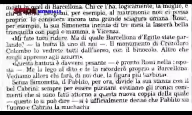 “Tutto è nato perchè feci una domanda a Rossi in relazione al fatto che, mentre gli altri azzurri attendevano le proprie compagne nel ritiro di Barcellona, lui aveva sua moglie Simonetta in dolce attesa e, per fare una battuta, mi disse “per fortuna in stanza ho la mia Cabriñas”. All’epoca si facevano i pezzi a braccio e così le mie 12 righe in cui riportavo la battuta di Pablito, fecero scalpore. Il Barone Causio fece il moralista dicendo che “certe cose non si possono scrivere”. Da quel momento in poi silenzio stampa fino alla coppa alzata con soddisfazione di tutti”.