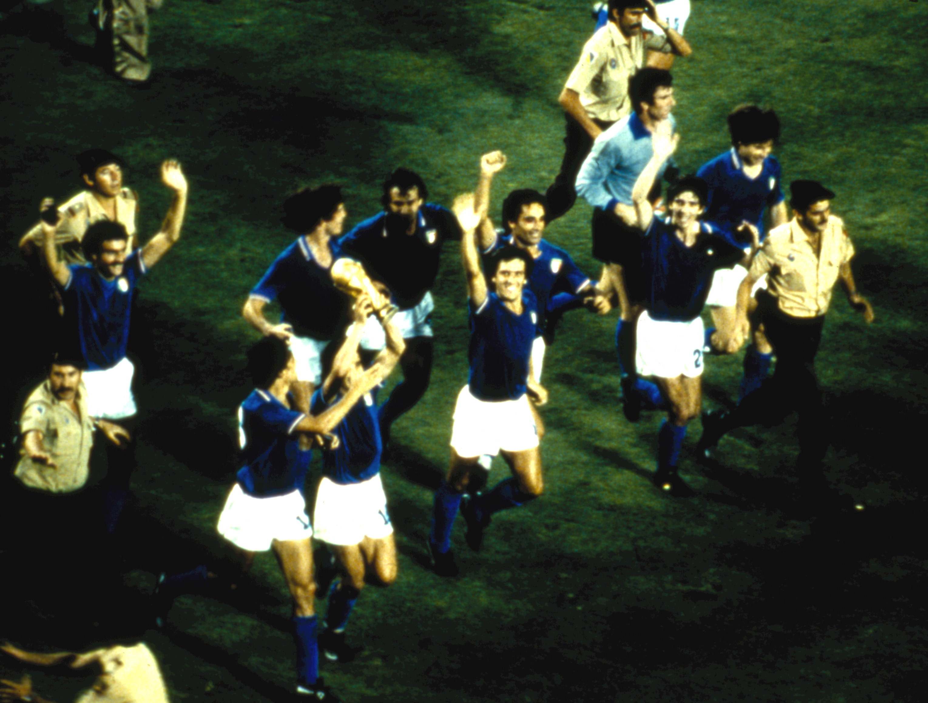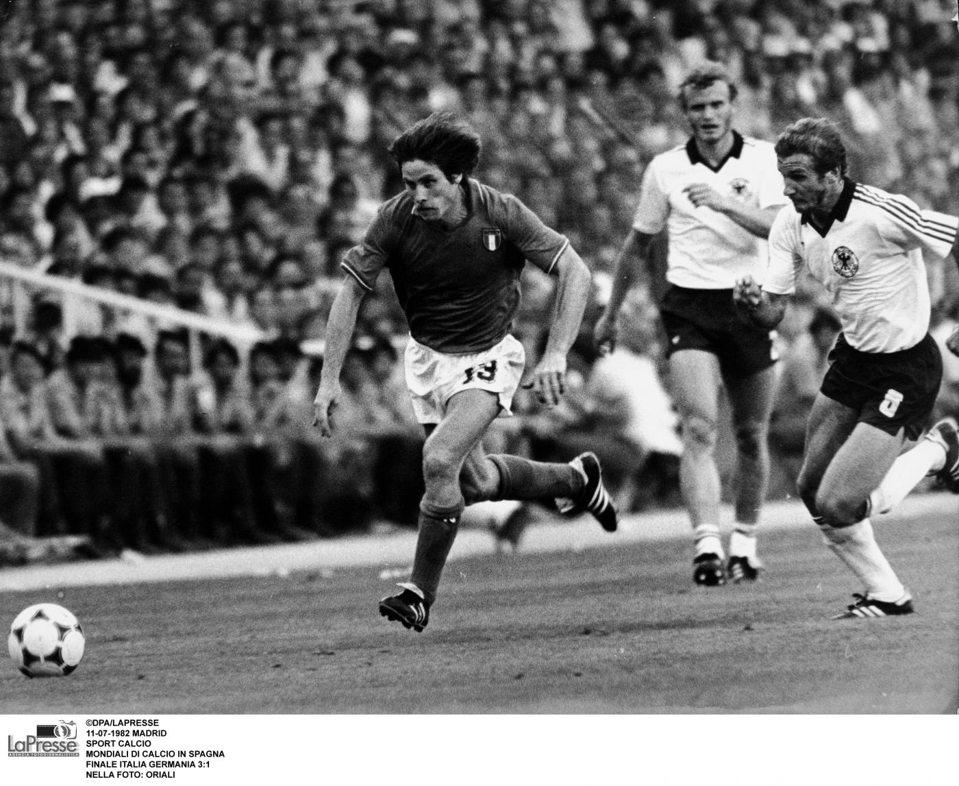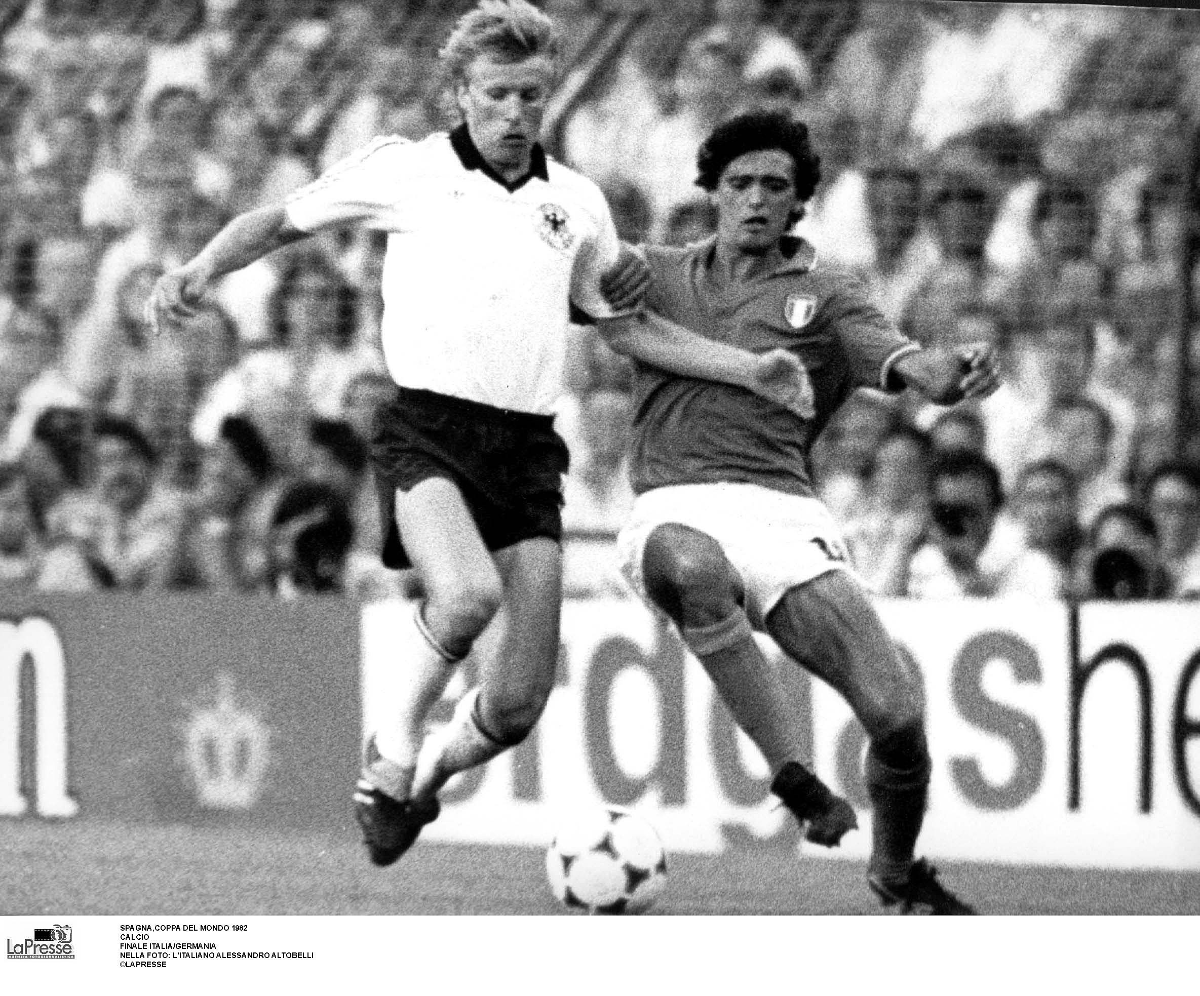 Il 12 luglio quindi il Santiago Bernabeu tifa Italia. Gli azzurri sfruttano il “fattore campo” ma soprattutto la loro superiore condizione fisica. Potrebbero passare in vantaggio già nel primo tempo sul calcio di rigore, ma Antonio Cabrini la spara fuori. Invece di abbattersi, gli undici di Bearzot ritornano in campo con rabbia. Una rabbia che porta Cabrini e Rossi ad avventarsi come disperati su un cross di Gentile. La spunta Rossi, che ci porta in vantaggio. È il 56′. Dodici minuti più tardi Scirea serve al limite dell’area una palla che Tardelli stoppa male ma rimedia tirando in scivolata un memorabile diagonale. Il suo urlo è la liberazione di una nazionale che sta per vincere un mondiale dopo due mesi di polemiche e critiche. Non è finita, perché in contropiede Spillo Altobelli ha la freddezza di dribblare Schumacher e segnare il 3-0. All’83’ Breitner segna il gol della bandiera per i tedeschi. Poi il fischio finale e il triplice “Campioni del Mondo” ripetuto dal telecronista Nando Martellini.
