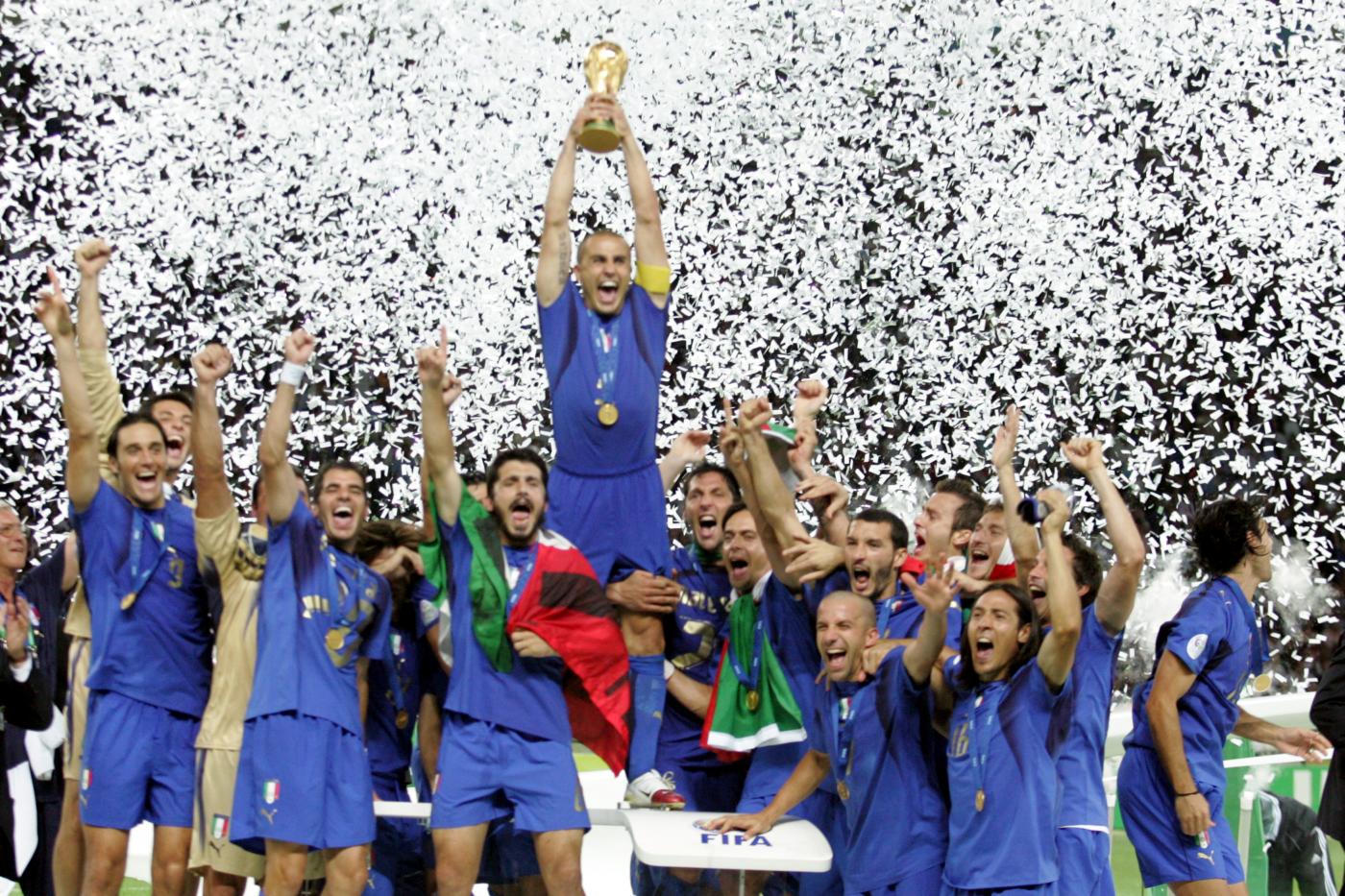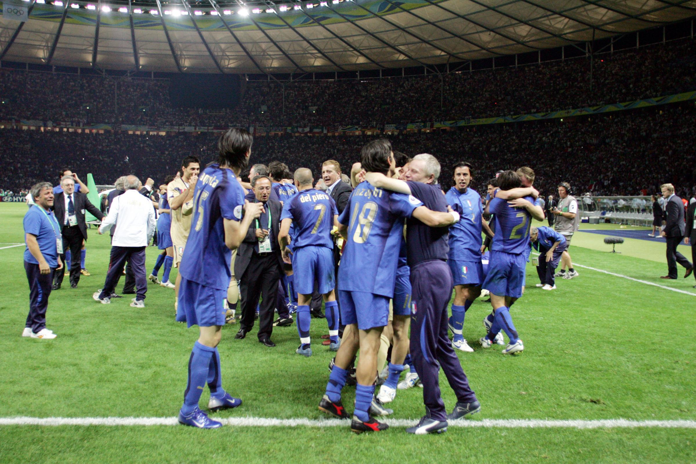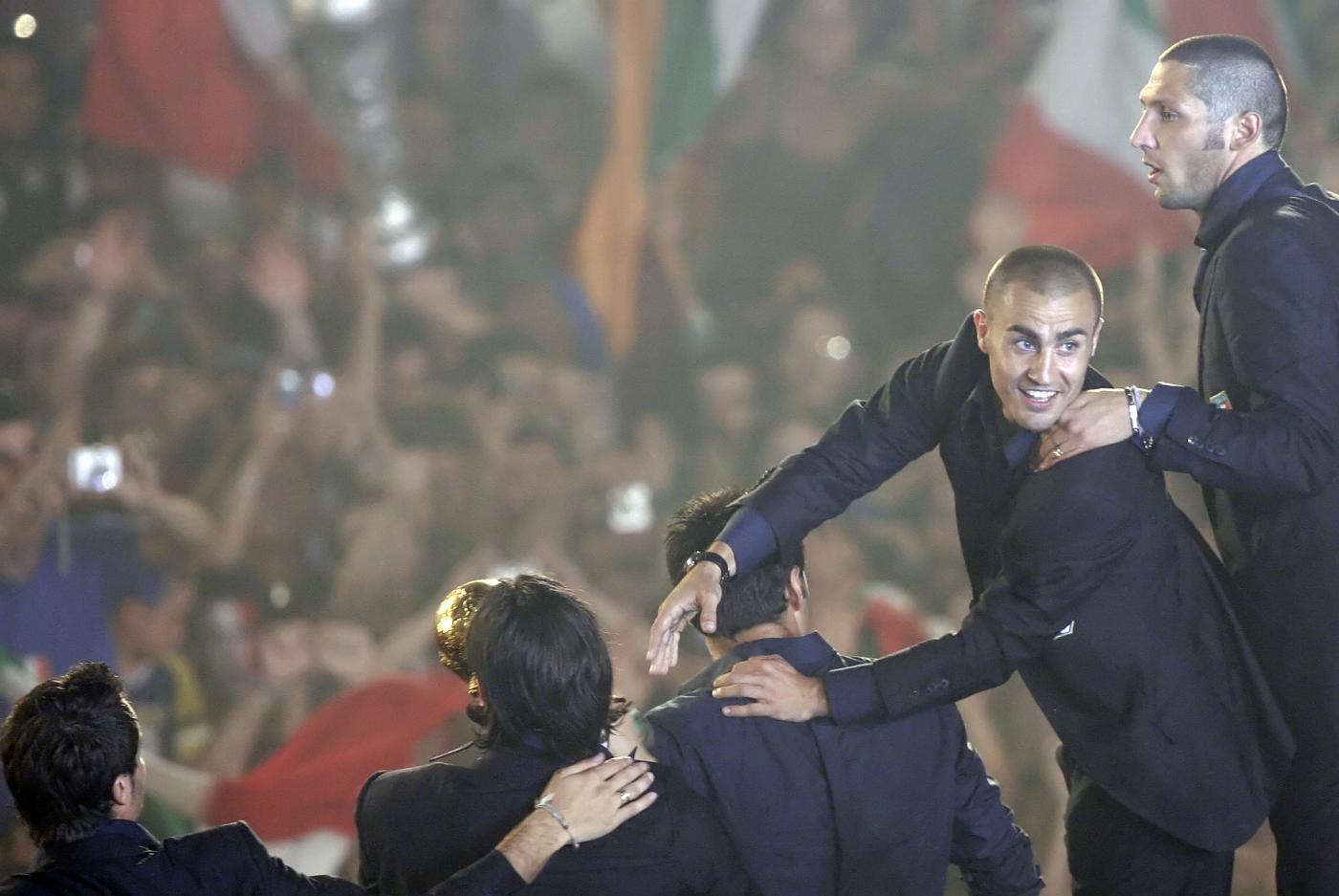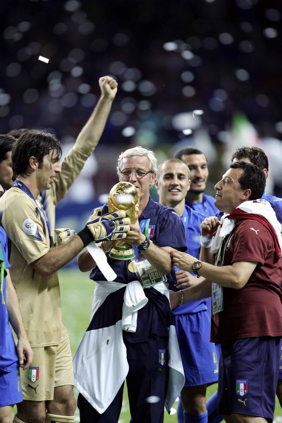 Il mondiale di Germania 2006 ha molti punti in comune con quello del 1982: le critiche all’allenatore e al gruppo, i pronostici sfavorevoli della vigilia, l’assenza di grandi solisti, la forza della difesa e del collettivo. La nazionale arriva al ritiro di Coverciano in pieno terremoto Calciopoli, che investe anche Lippi, Cannavaro e Buffon, tutti e tre legati a vario titolo alla Juve, la squadra più colpita dalle inchieste. Marcello Lippi, oltre che allenatore simbolo dei bianconeri, è padre di Davide Lippi, procuratore coinvolto nell’indagine sulla Gea World. Fabio Cannavaro è uno degli juventini più rappresentativi (giocò 48 delle 51 gare ufficiali di quella stagione) e viene attaccato perché in conferenza stampa difende Luciano Moggi, l’imputato degli imputati di Calciopoli. Gigi Buffon, portiere della Juve è coinvolto in un’inchiesta secondaria, quella sul calcioscommesse a Parma. Il 25 maggio lascia il ritiro scortato da Gigi Riva per essere interrogato dai pm parmigiani. In quei giorni si pensa che, come è successo per i vertici della Federcalcio, Buffon Cannavaro e Lippi debbano andare a casa. Buffon e Cannavaro giocheranno, da assoluti protagonisti, tutti i 690 minuti di quel mondiale. Lippi non sbaglierà una mossa. Uno striscione esposto al Circo Massimo sintetizza brutalmente: “So’ partiti cojoni so’ tornati campioni”.