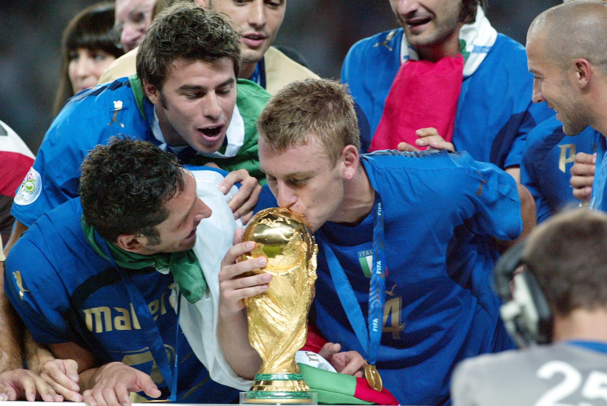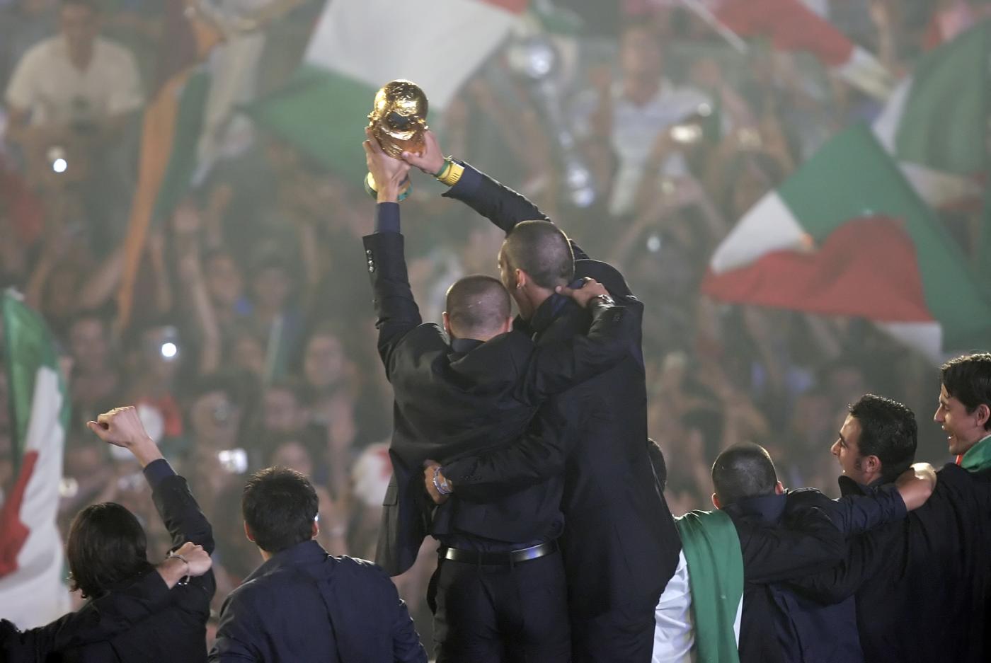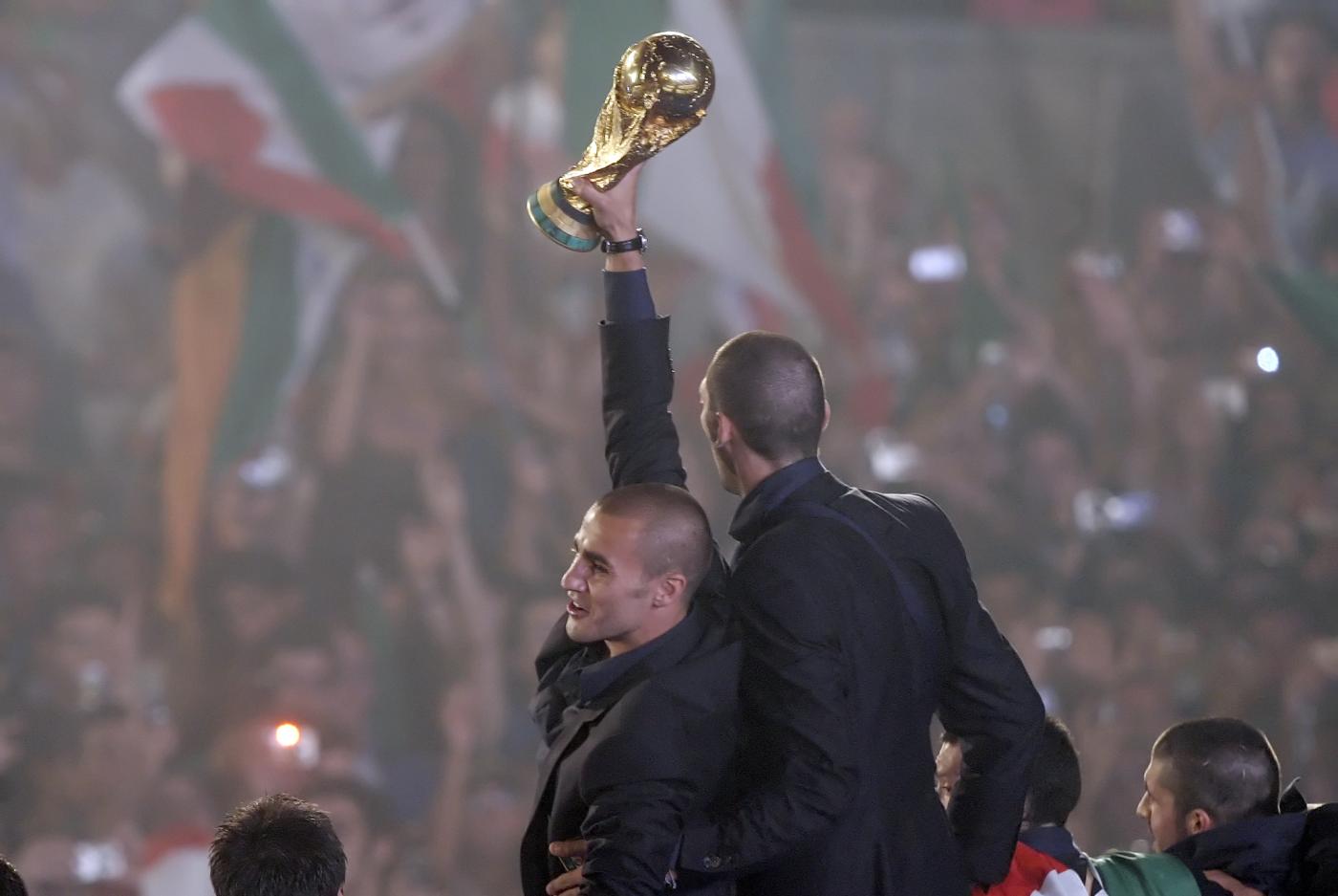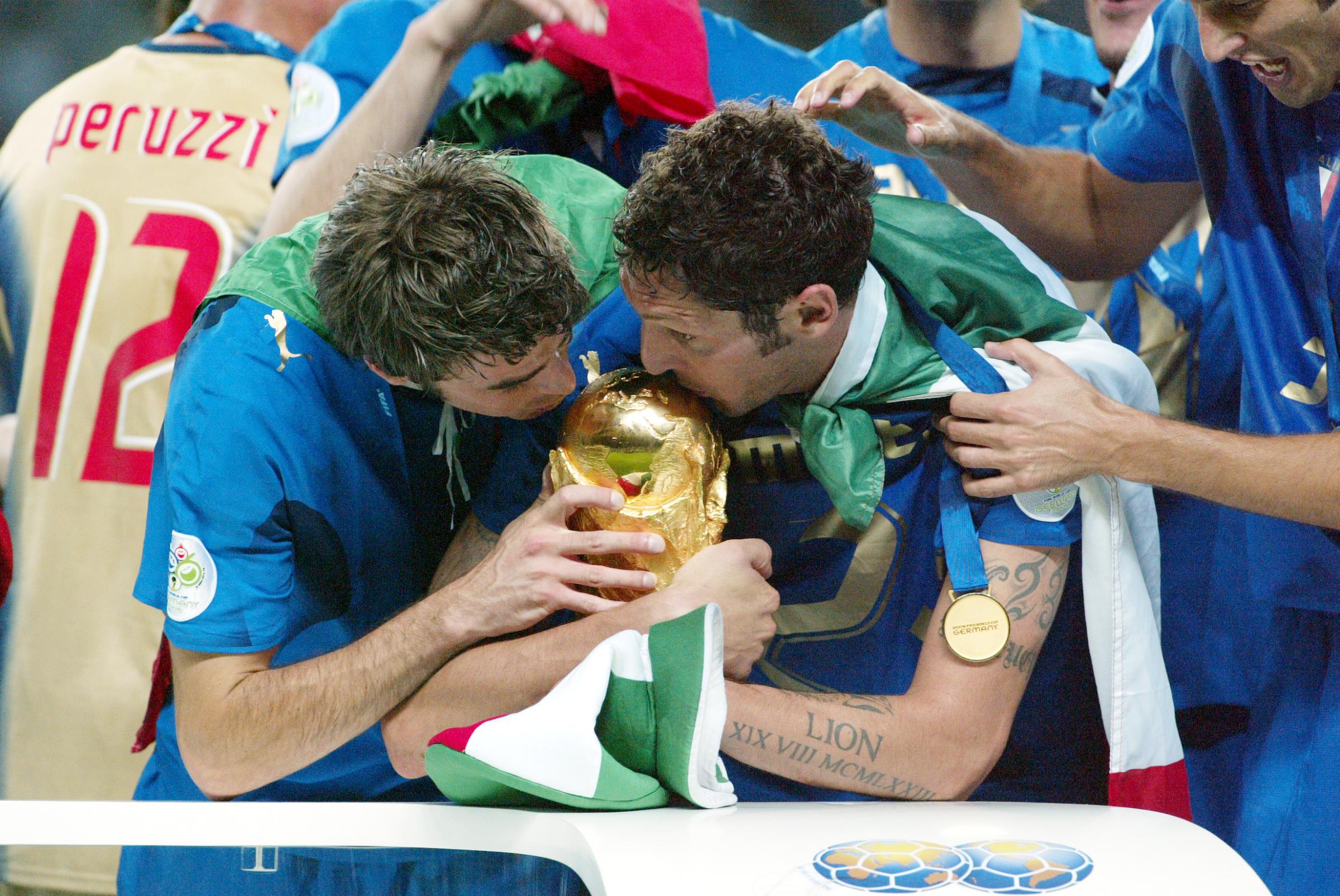 Il mondiale di Germania 2006 ha molti punti in comune con quello del 1982: le critiche all’allenatore e al gruppo, i pronostici sfavorevoli della vigilia, l’assenza di grandi solisti, la forza della difesa e del collettivo. La nazionale arriva al ritiro di Coverciano in pieno terremoto Calciopoli, che investe anche Lippi, Cannavaro e Buffon, tutti e tre legati a vario titolo alla Juve, la squadra più colpita dalle inchieste. Marcello Lippi, oltre che allenatore simbolo dei bianconeri, è padre di Davide Lippi, procuratore coinvolto nell’indagine sulla Gea World. Fabio Cannavaro è uno degli juventini più rappresentativi (giocò 48 delle 51 gare ufficiali di quella stagione) e viene attaccato perché in conferenza stampa difende Luciano Moggi, l’imputato degli imputati di Calciopoli. Gigi Buffon, portiere della Juve è coinvolto in un’inchiesta secondaria, quella sul calcioscommesse a Parma. Il 25 maggio lascia il ritiro scortato da Gigi Riva per essere interrogato dai pm parmigiani. In quei giorni si pensa che, come è successo per i vertici della Federcalcio, Buffon Cannavaro e Lippi debbano andare a casa. Buffon e Cannavaro giocheranno, da assoluti protagonisti, tutti i 690 minuti di quel mondiale. Lippi non sbaglierà una mossa. Uno striscione esposto al Circo Massimo sintetizza brutalmente: “So’ partiti cojoni so’ tornati campioni”.