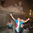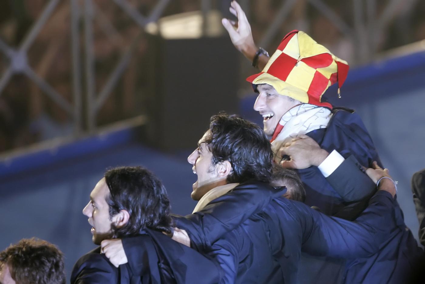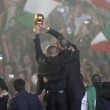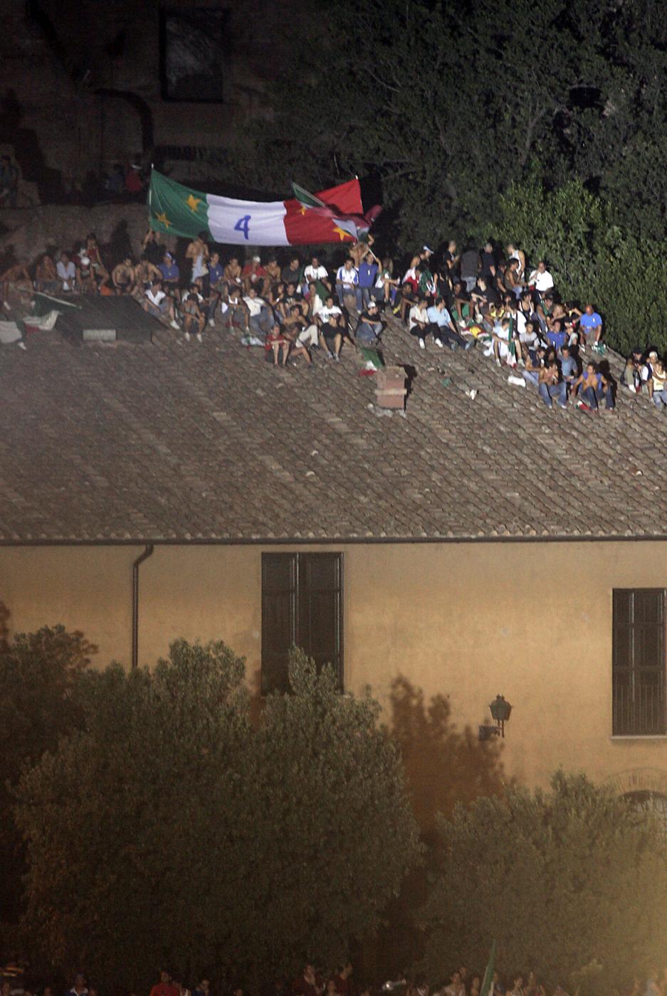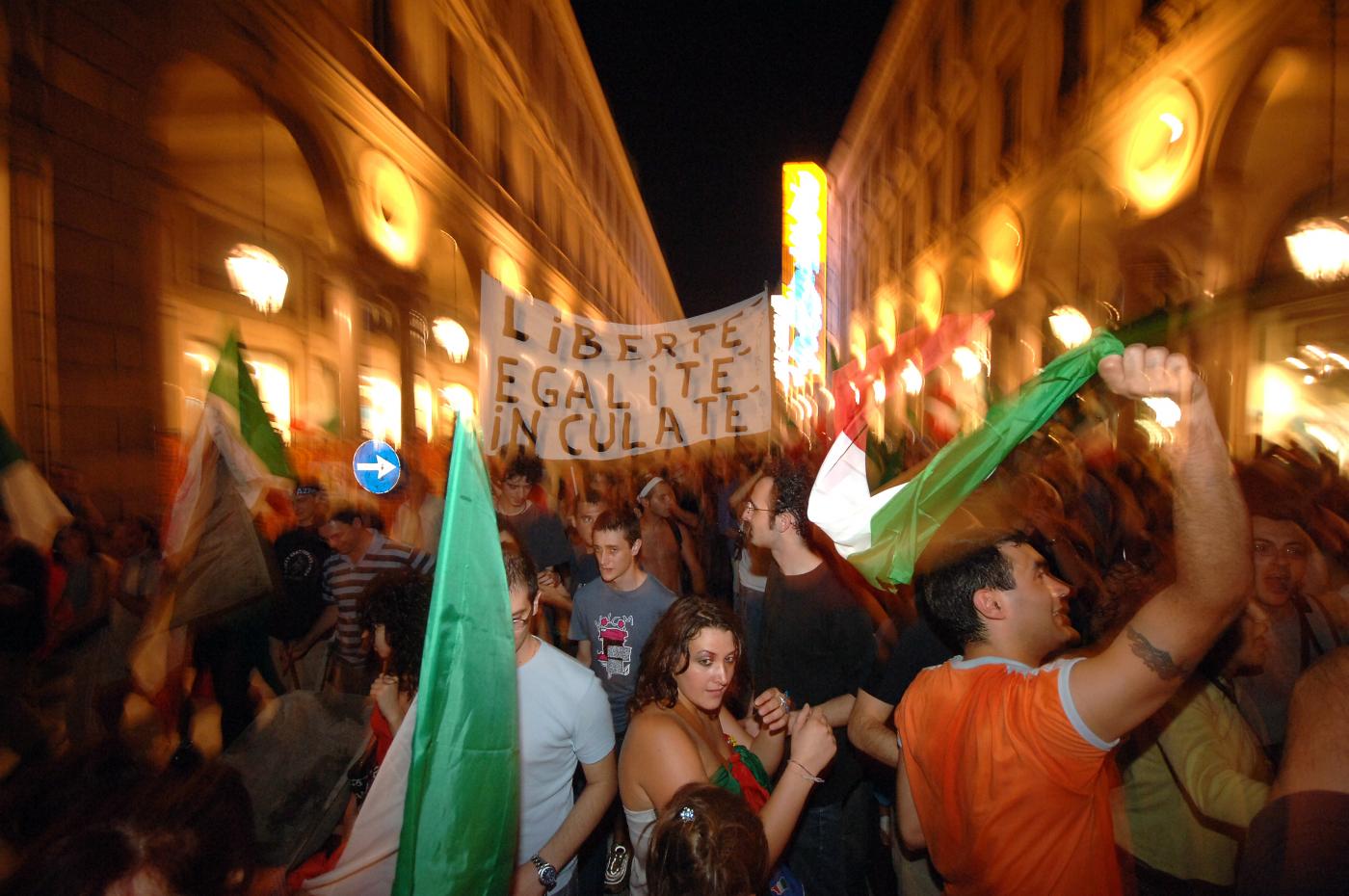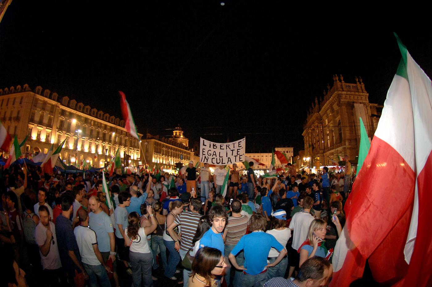 Il mondiale di Germania 2006 ha molti punti in comune con quello del 1982: le critiche all’allenatore e al gruppo, i pronostici sfavorevoli della vigilia, l’assenza di grandi solisti, la forza della difesa e del collettivo. La nazionale arriva al ritiro di Coverciano in pieno terremoto Calciopoli, che investe anche Lippi, Cannavaro e Buffon, tutti e tre legati a vario titolo alla Juve, la squadra più colpita dalle inchieste. Marcello Lippi, oltre che allenatore simbolo dei bianconeri, è padre di Davide Lippi, procuratore coinvolto nell’indagine sulla Gea World. Fabio Cannavaro è uno degli juventini più rappresentativi (giocò 48 delle 51 gare ufficiali di quella stagione) e viene attaccato perché in conferenza stampa difende Luciano Moggi, l’imputato degli imputati di Calciopoli. Gigi Buffon, portiere della Juve è coinvolto in un’inchiesta secondaria, quella sul calcioscommesse a Parma. Il 25 maggio lascia il ritiro scortato da Gigi Riva per essere interrogato dai pm parmigiani. In quei giorni si pensa che, come è successo per i vertici della Federcalcio, Buffon Cannavaro e Lippi debbano andare a casa. Buffon e Cannavaro giocheranno, da assoluti protagonisti, tutti i 690 minuti di quel mondiale. Lippi non sbaglierà una mossa. Uno striscione esposto al Circo Massimo sintetizza brutalmente: “So’ partiti cojoni so’ tornati campioni”.