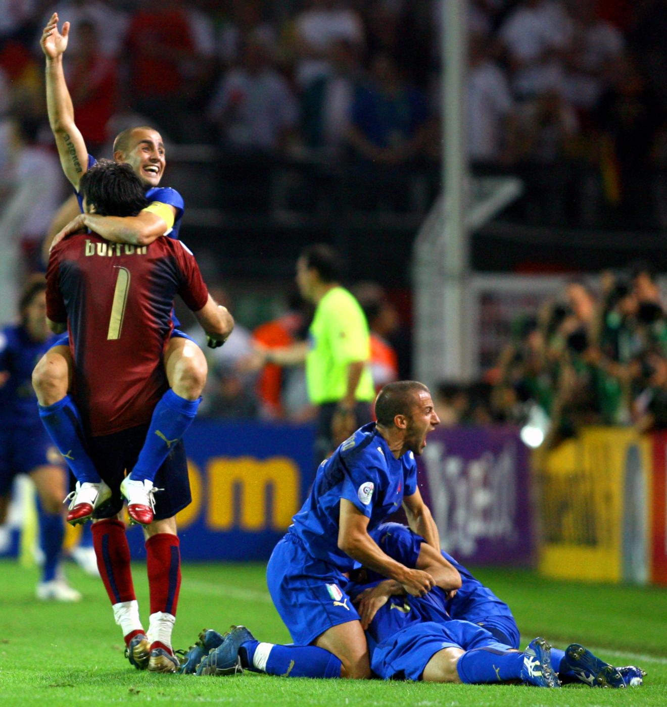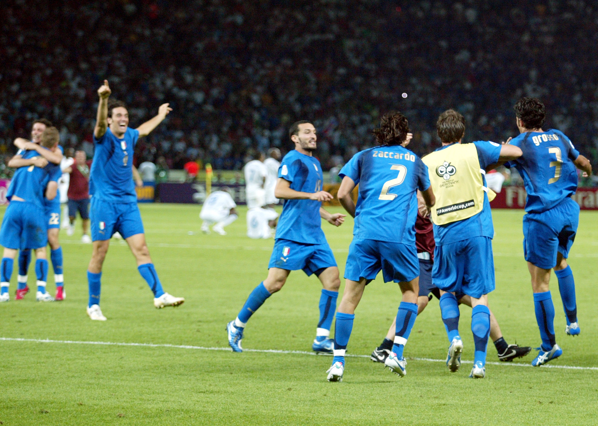 I francesi senza il loro leader vanno ai rigori. La sequenza: Pirlo gol, Wiltord gol, Materazzi gol, Trezeguet traversa, De Rossi gol, Abidal gol, Del Piero gol, Sagnol gol. Il rigore che vale la coppa del Mondo non poteva che calciarlo Fabio Grosso: esecuzione perfetta, 5 a 3, quarto trionfo mondiale, vendetta sui francesi.