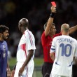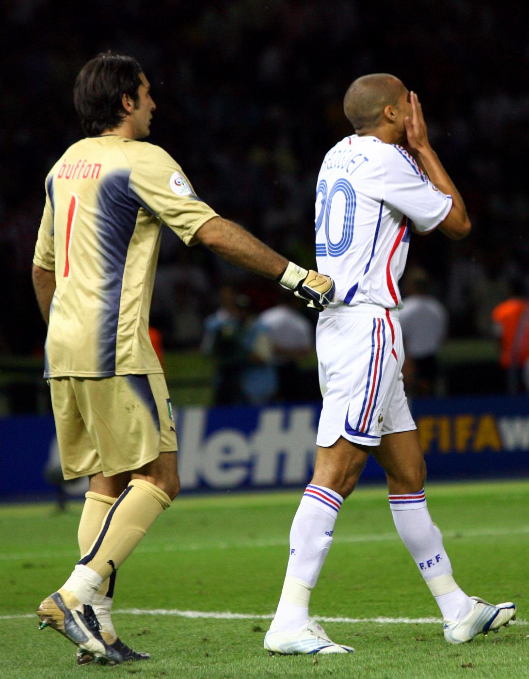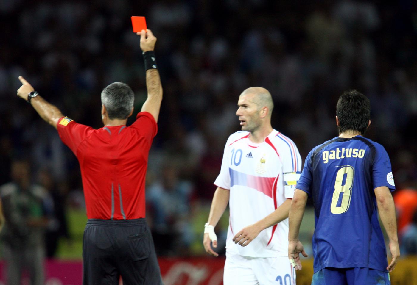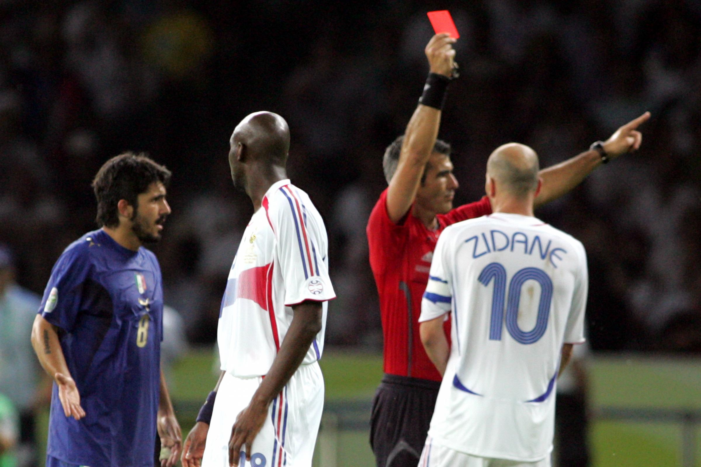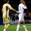 Protagonista in negativo e in positivo Materazzi. Dopo 7 minuti atterra Malouda: calcio di rigore che Zidane trasforma con uno sprezzante cucchiaio che colpisce la traversa e finisce dietro la linea di porta. Dopo 12 minuti Materazzi rimedia con un imperioso stacco di testa su corner di Totti. Ancora di testa con Materazzi (respinto sulla linea di porta) e Toni (traversa) sfioriamo il vantaggio. Poi è dominio francese e buona difesa italiana, che non concede molto ai galletti. Si va ai supplementari e i francesi continuano ad attaccare, sfiorando il gol con Ribery e una grande parata di Buffon su testa di Zidane. Proprio Zidane, il migliore dei suoi, cambia l’inerzia della gara facendosi espellere al minuto 111 per una testata al petto di Materazzi, che gli aveva rivolto una frase che per mesi si tenterà di decifrare. Mistero svelato un anno dopo: Zidane si lamenta della marcatura stretta chiedendo all’italiano se voleva la sua maglia. Materazzi risponde: “Preferisco la puttana di tua sorella”.