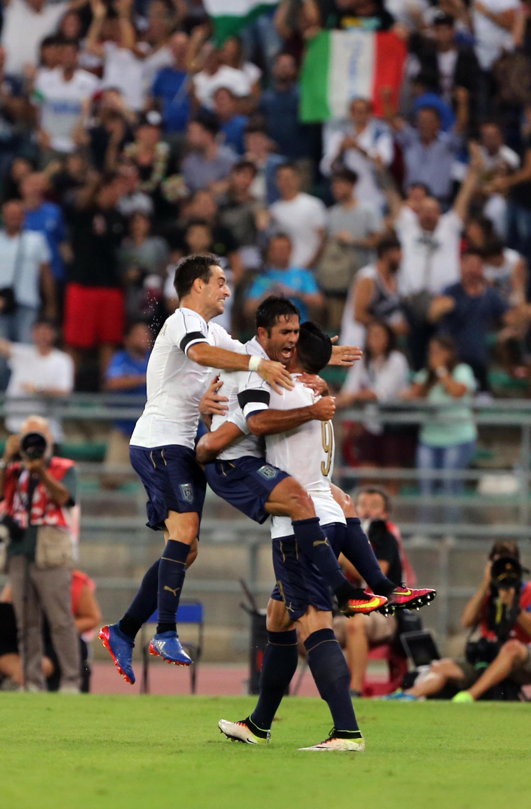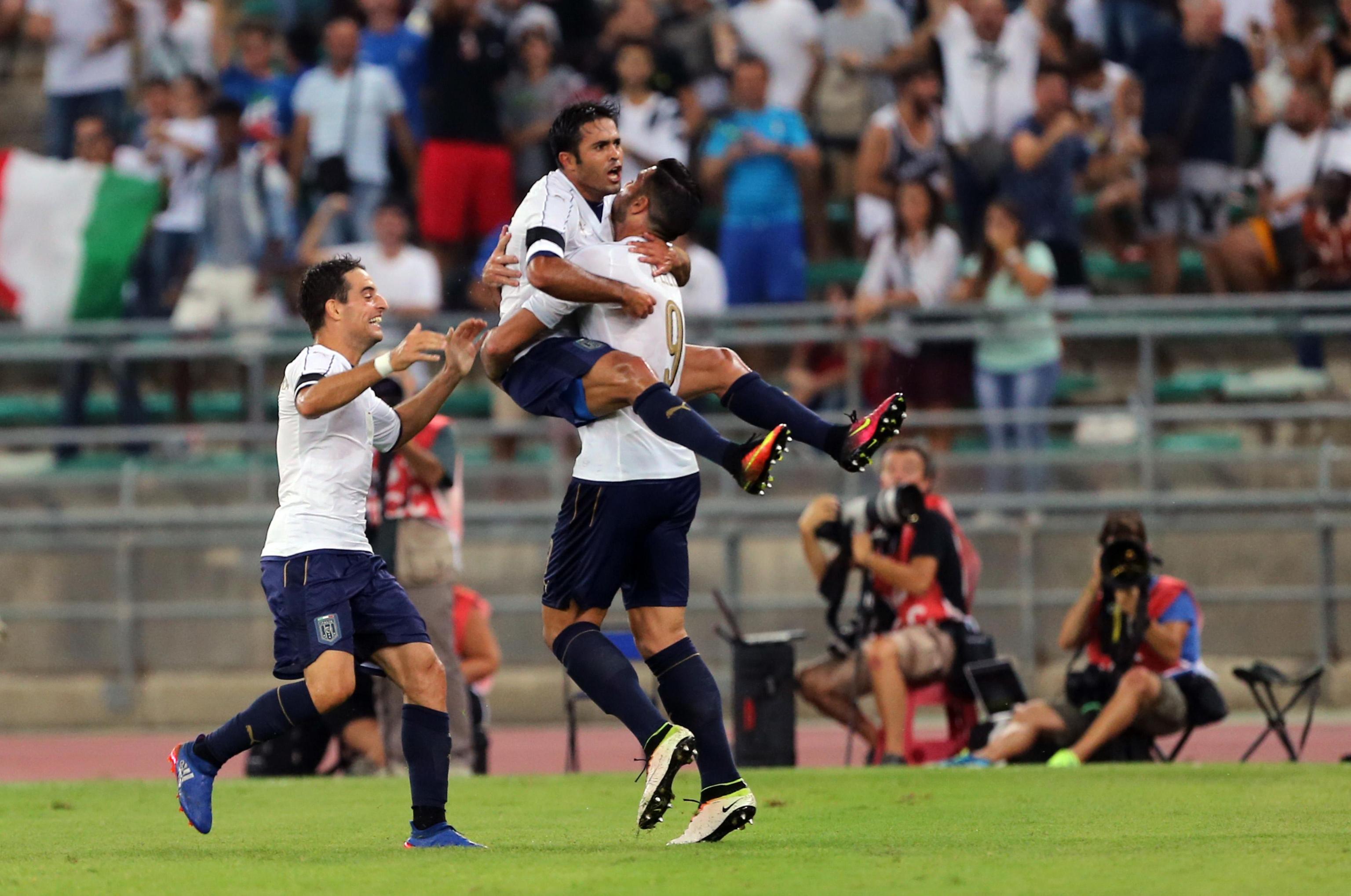 ITALIA (3-5-2): Buffon 5.5 (1′ st Donnarumma 6), Barzagli 5.5 (1′ st Rugani 5.5), Astori 6, Chiellini 5, Candreva 6, Bonaventura 6 (21′ st Verratti 5.5), De Rossi 5.5 (1′ st Montolivo 5.5), Parolo 5.5, De Sciglio 5.5 (13′ st Florenzi 6), Eder 6, Pellè 6.5 (30′ st Belotti sv). (13 Marchetti, 14 Antonelli, 5 Ogbonna, 21 Bernardeschi, 22 Gabbiadini, 11 Immobile, 23 Pavoletti). All.: Ventura 5.5.
