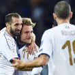 Tre minuti dopo il gol di Chiellini, che un subito dopo salvava, spazzando su Nestorovski dopo un altro errore di Bonucci, Dopo l’intervallo, Rugani al posto dell’acciaccato Barzagli poi al 19′ Bernardeschi al posto di Verdi.