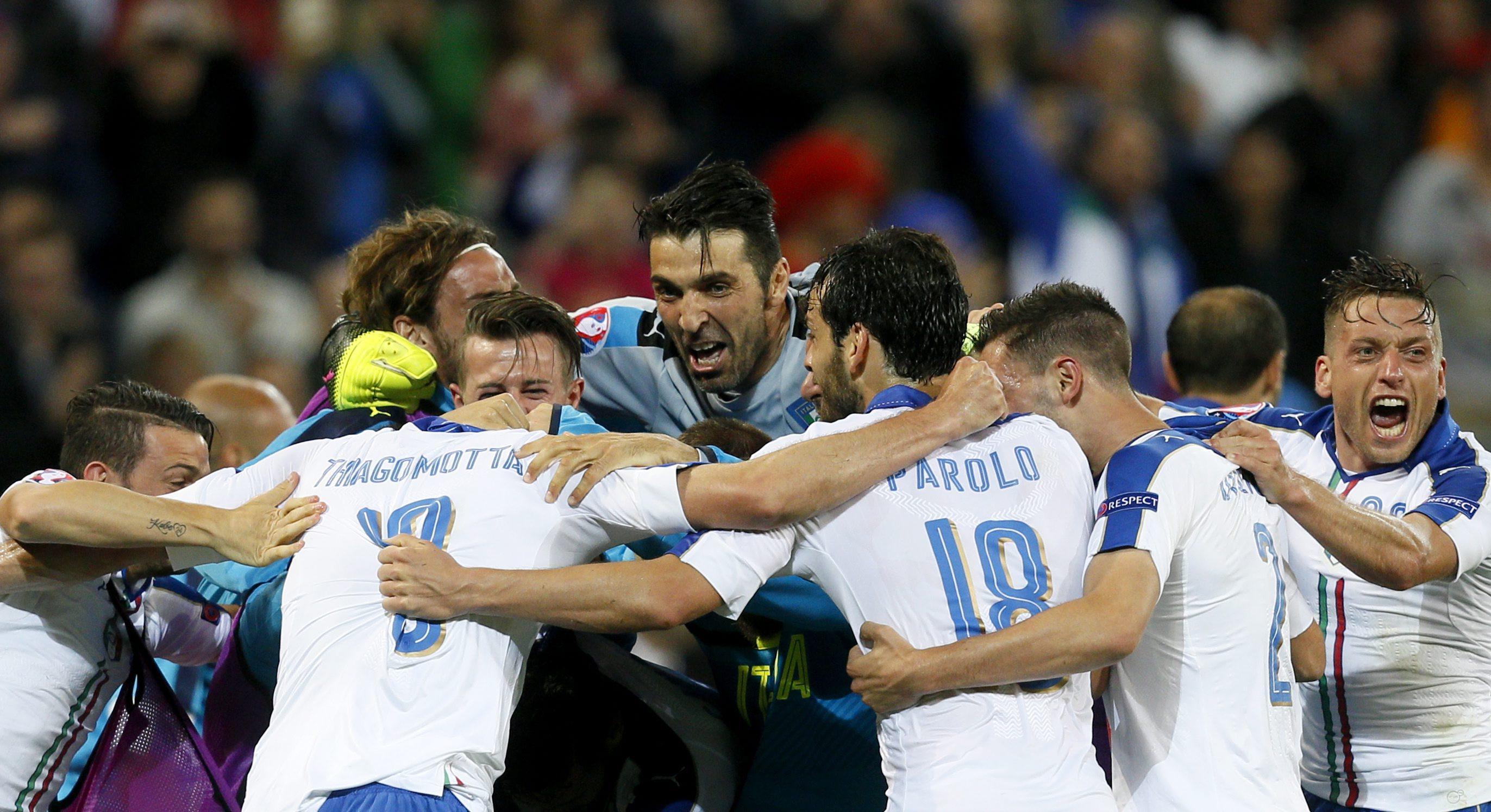 ITALIA (3-5-2): 1 Buffon, 15 Barzagli, 19 Bonucci, 3 Chiellini, 7 Candreva, 18 Parolo, 16 De Rossi, 23 Giaccherini, 8 Florenzi, 9 Pellè, 17 Eder.