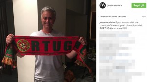 Lo Special One ha postato una foto che lo ritrae quanto mai sorridente con in mano una sciarpa del Portogallo.