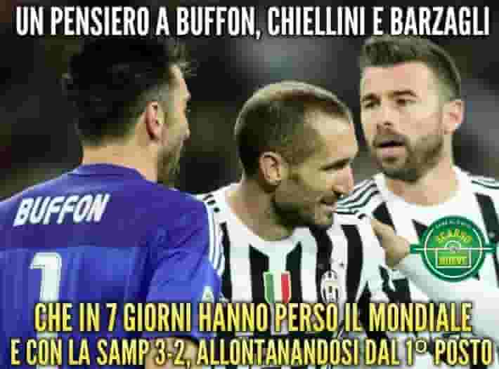 Il web ha regalato un pensiero anche a Buffon, Barzagli e Chiellini, calciatori reduci dalla cocente eliminazione dal Mondiale. Per loro si è chiusa una settimana da incubo.Â