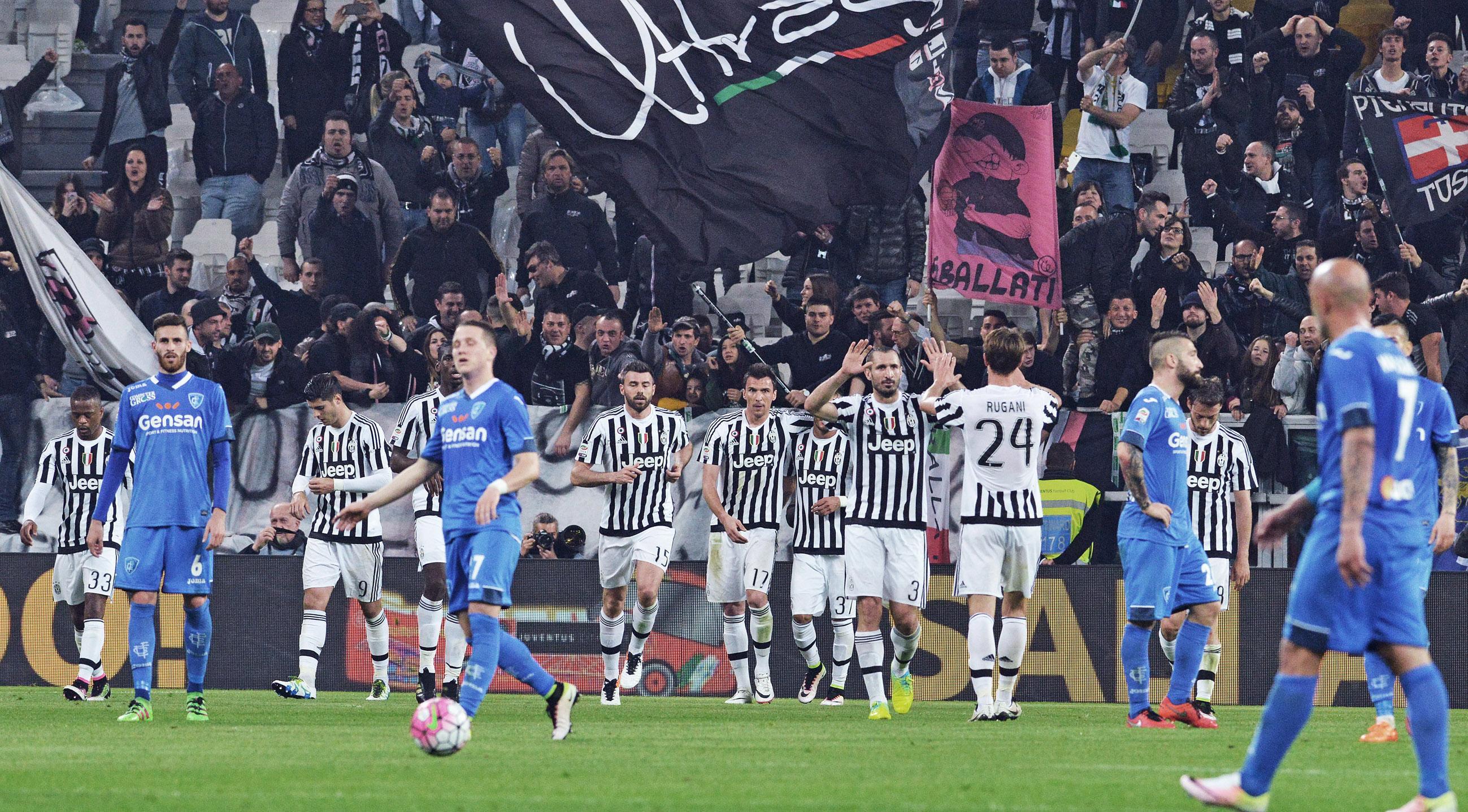 Allegri ha perso nuovamente Chiellini, convertendo la squadra al 4-4-2 con Lichtsteiner ed Evra sulla linea difensiva e Cuadrado esterno di centrocampo, ha tolto Mandzukic con Zaza, ammonito per gioco scorretto dopo neppure 2′, finale emozionante con l’Empoli deciso ad agguantare l’1-1 – sinistro di Zielinski centrale – che ha concesso ai bianconeri chances per il raddoppio, sfumate per questione di centimetri: giravolta spettacolare di Pogba (43′), parate di Skorupski su Asamoah dopo un tiro non trattenuto di Morata e Zaza.