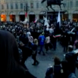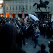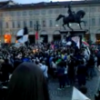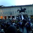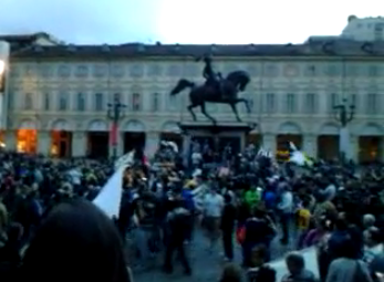 Attorno al ‘Caval d’Brons‘, il monumento equestre che è tra i simboli di Torino,  si sono  radunati centinaia di tifosi. Indossano maglie, sciarpe e cappelli con i colori della squadra del cuore: la Juventus. Molte le bandiere bianconere, che hanno sventolano mentre alcuni  altoparlanti hanno diffuso  ‘Juve storia di un grande amore‘, l’inno della squadra, scritto nel 2007 da Paolo Belli. Video BlitzQuotidiano.it.