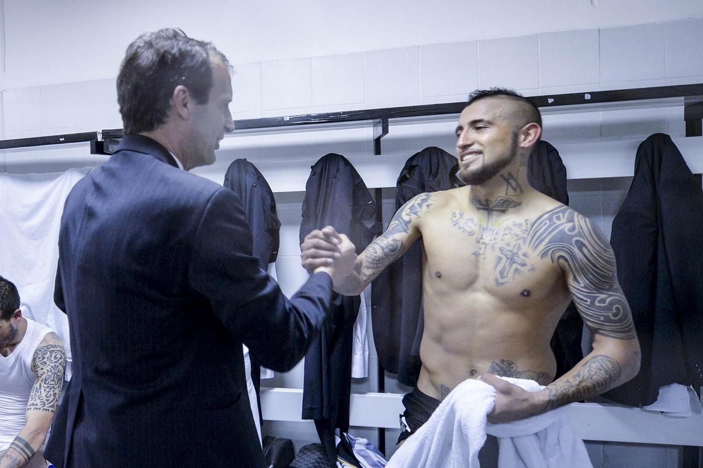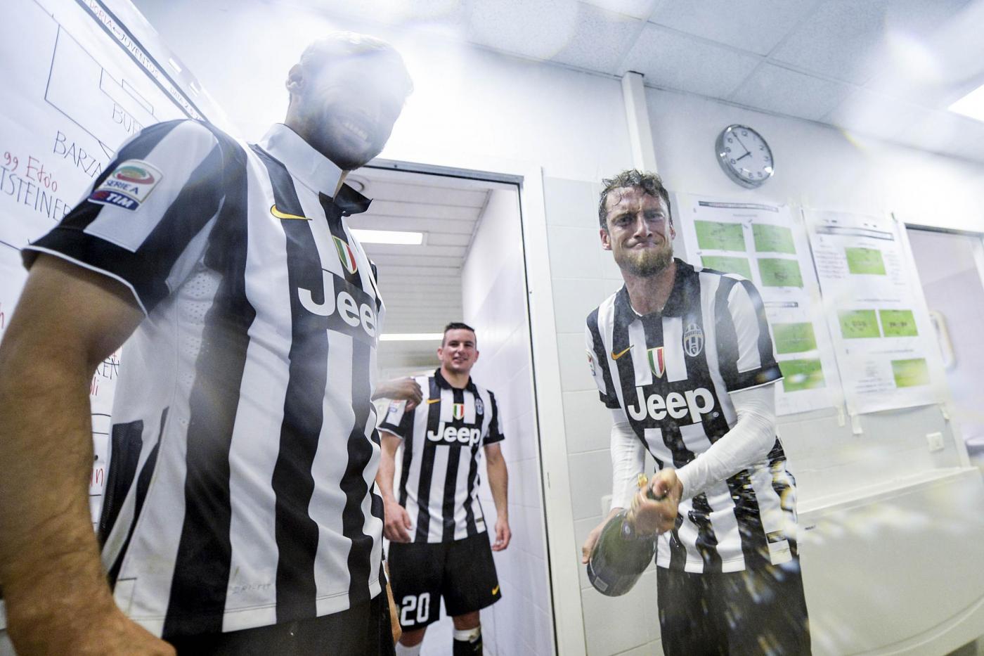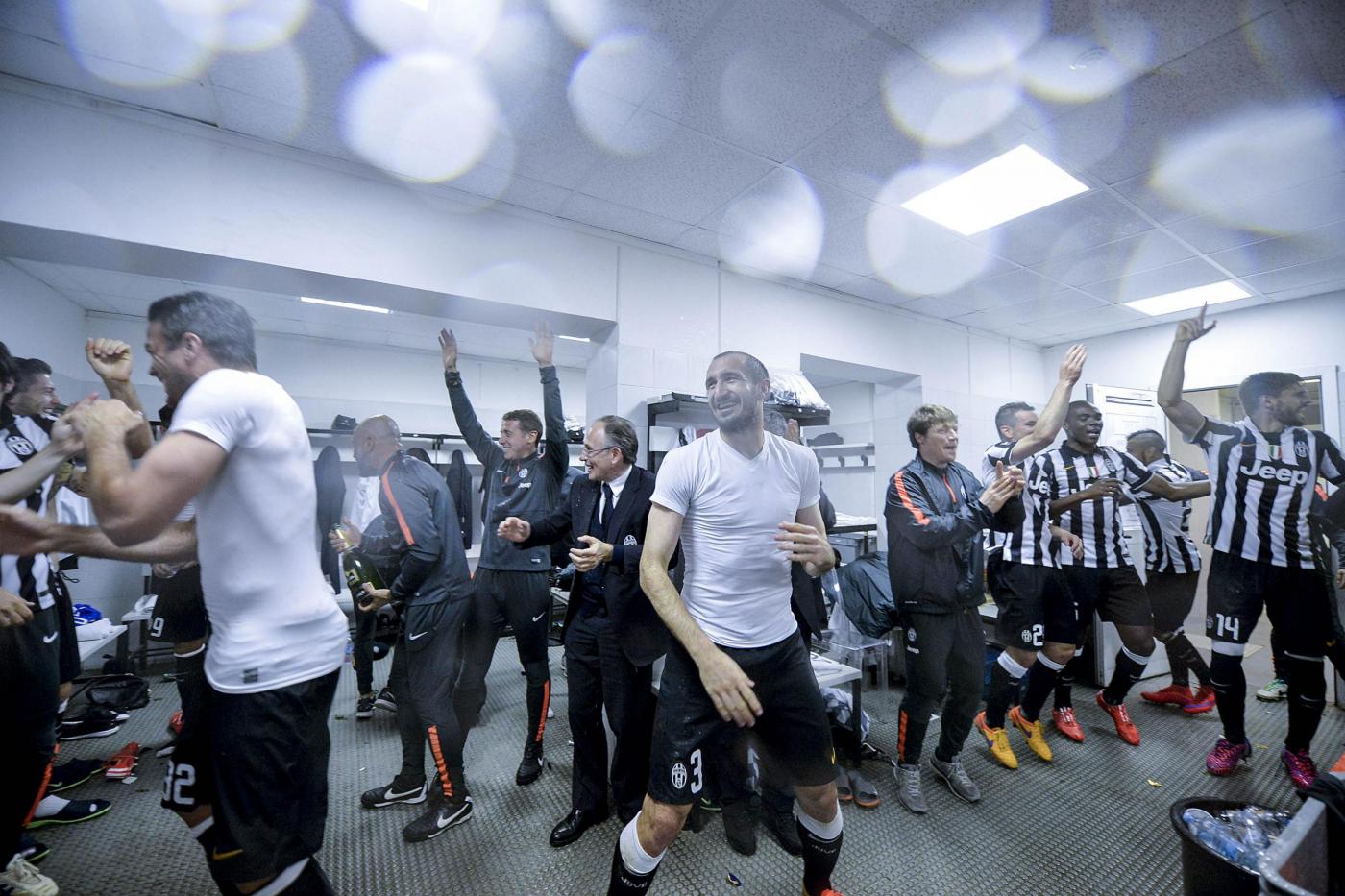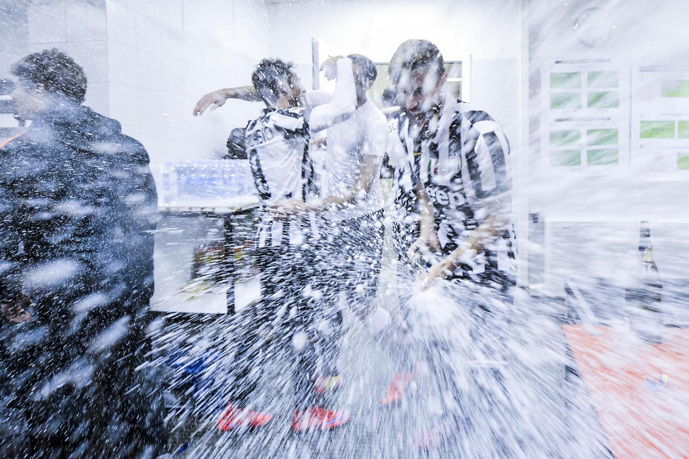 La festa dei giocatori negli spogliatoi (LaPresse).