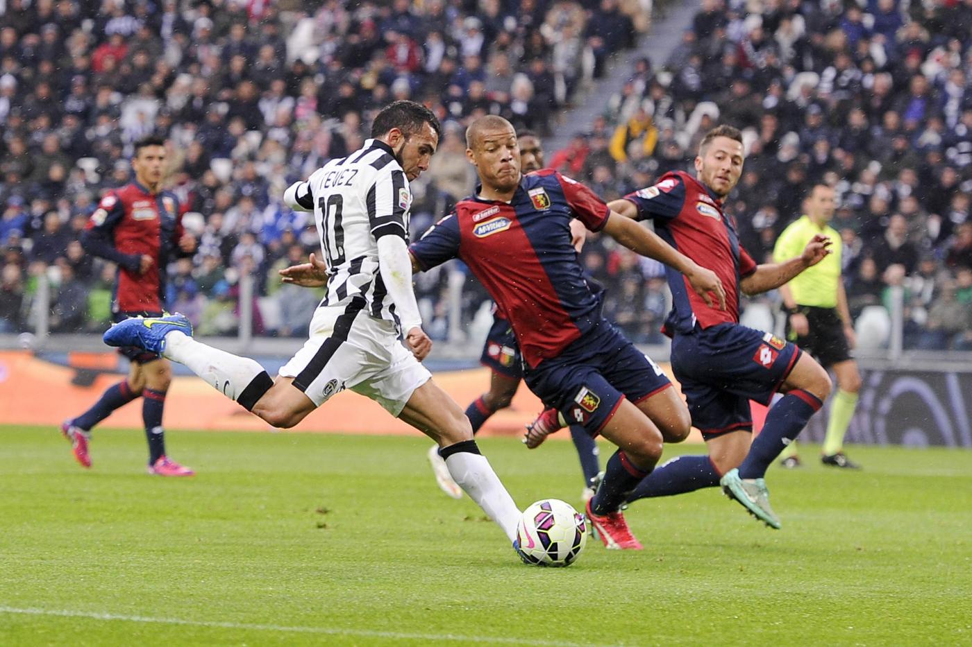 TORINO, JUVENTUS STADIUM – Juventus-Genoa 1-0, pagelle della partita valida per la 28a giornata del campionato italiano di calcio di Serie A. Gol di Carlos Tevez, Eugenio Lamanna ha parato un calcio di rigore allo stesso Tevez.