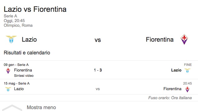 ROMA – Lazio-Fiorentina, streaming e diretta tv: dove vedere Serie A. Lazio-Fiorentina, partita valida per la 38°giornata del campionato italiano di calcio di Serie A, verrà trasmessa in diretta tv da Sky Sport e Mediaset Premium alle ore 20.45 ed in diretta streaming su pc, cellulari smartphone e tablet grazie alle applicazioni SkyGo e PremiumPlay. Classifica e calendario del campionato italiano di calcio di Serie A.