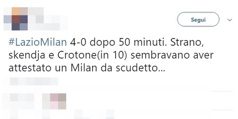 ROMA – La Lazio ha umiliato il Milan e gli utenti dei social network non hanno perdonato i rossoneri che, alla prima partita difficile, si sono sciolti come neve al sole allo Stadio Olimpico.
